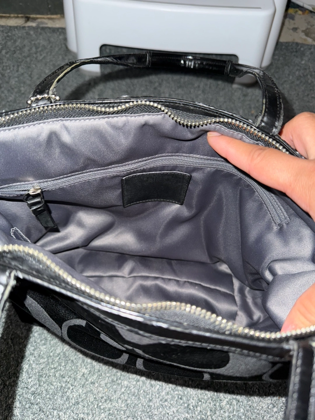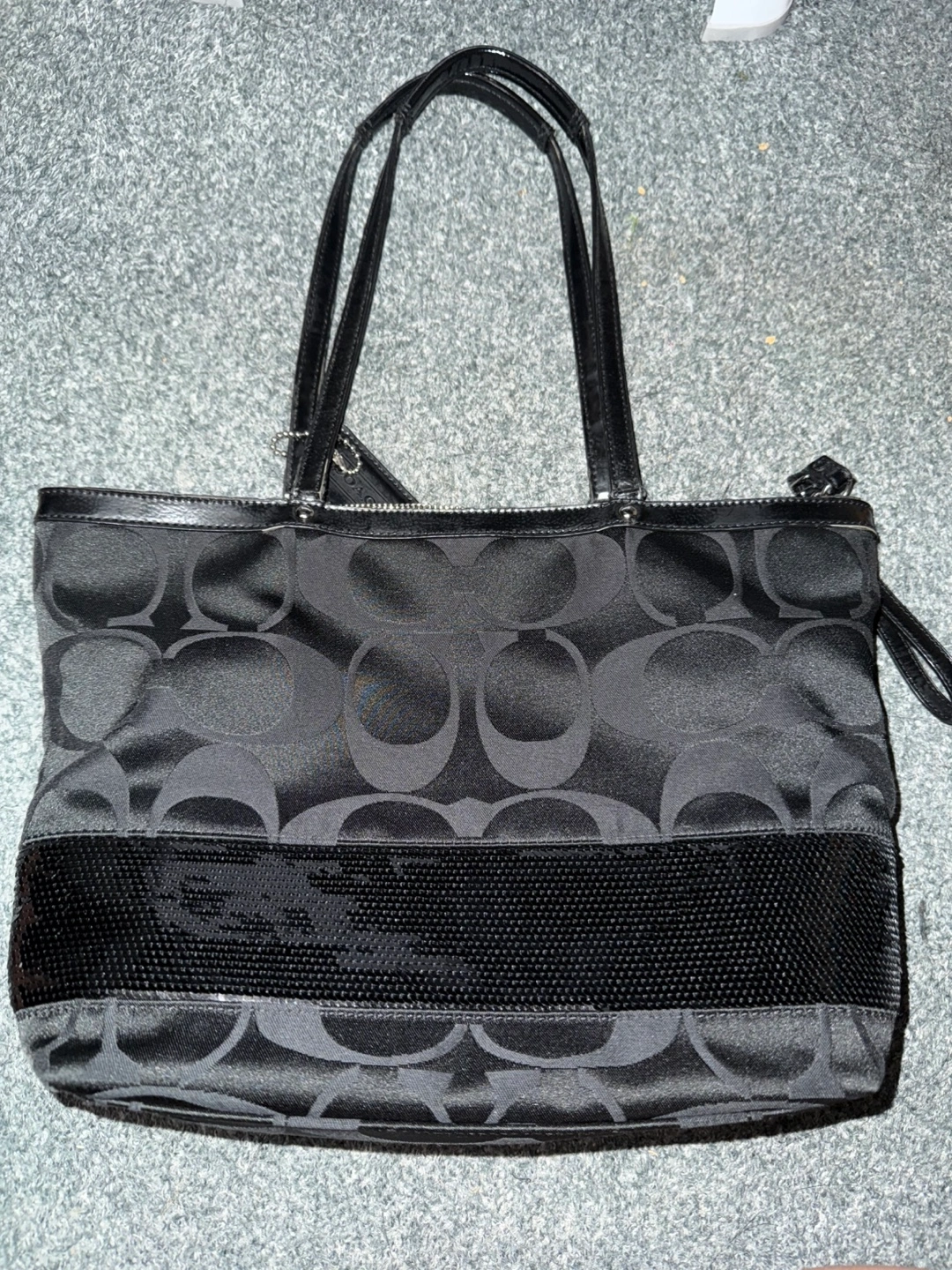 Selling a Coach black tote bag. Has minimal wear on the zipper rim but barely noticeable otherwise still in mint condition. Features the classic C logo and black sequins as decor all around the bag Cash only — pick up in Mississauga
