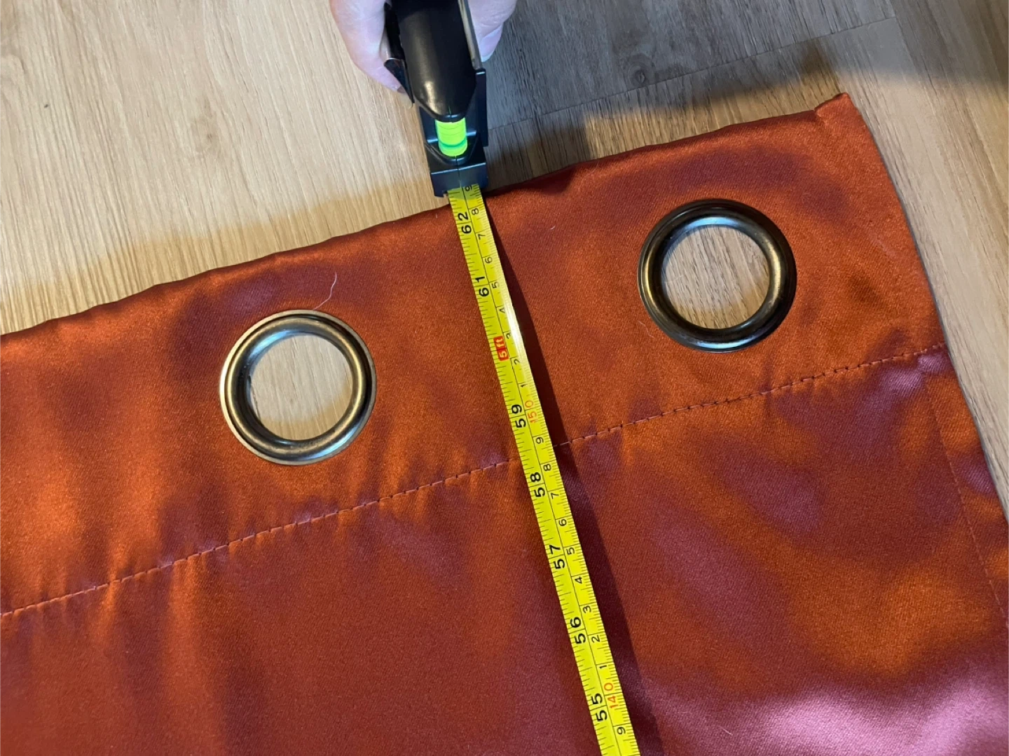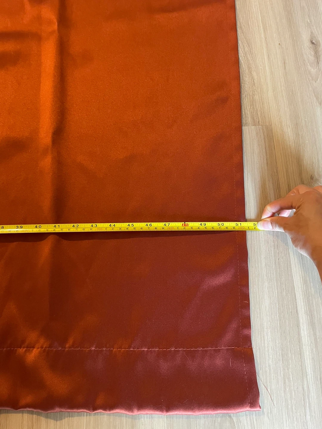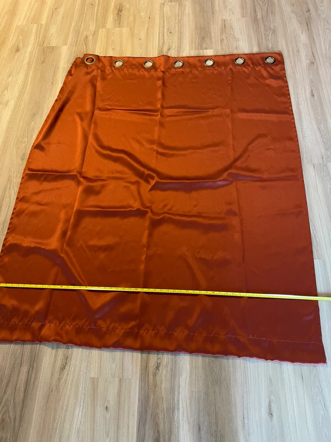 Selling a set of rust-coloured fully blackout curtain panels in good condition. It measures approximately 51 inches wide and 62 inches long. Comes with 2 panels.