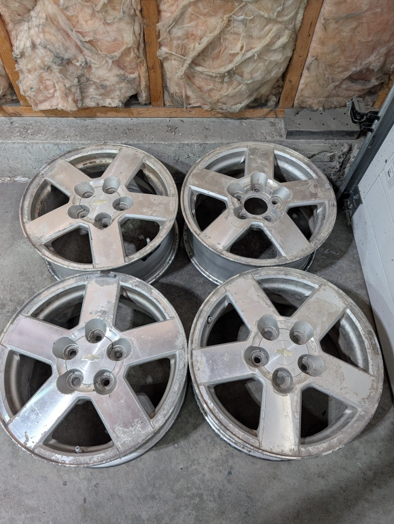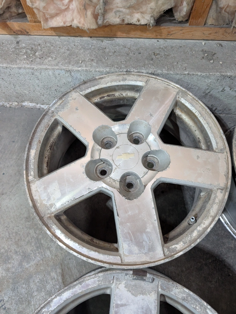 (4)-16 Inch Chevrolet Equinox Alloy Rims/TPMS Off 2007 Chevrolet Equinox Will Fit Many Years Of Chevrolet Equinox as well as other models that use 5x115 Go To www.wheel-size.com Or Ask Me If These Will Fit Your Vehicle See pictures for condition Bolt Pattern 5x115 Center Bore 70.3 Rim 16x6.5 Offset 46 Located Near Concordia And Lagimodiere $180.00 Obo (#12)