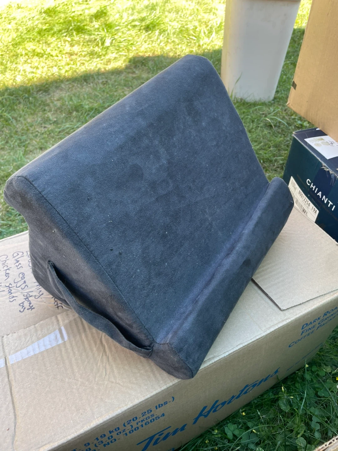Looking to sell this Pillow Pad tablet holder in grey. It's great for propping up your tablet or book while you relax. Perfect for reading in bed or watching videos on the couch! It's in good condition and ready for a new home