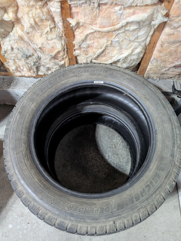 (2)-235/55R18 Michelin Defender LTX All Season Tires 2 tires only no rims 1 tire at 10/32nds 1 tire at 8/32nds $300.00 Obo Located Near Concordia and Lagimodiere (#A61)