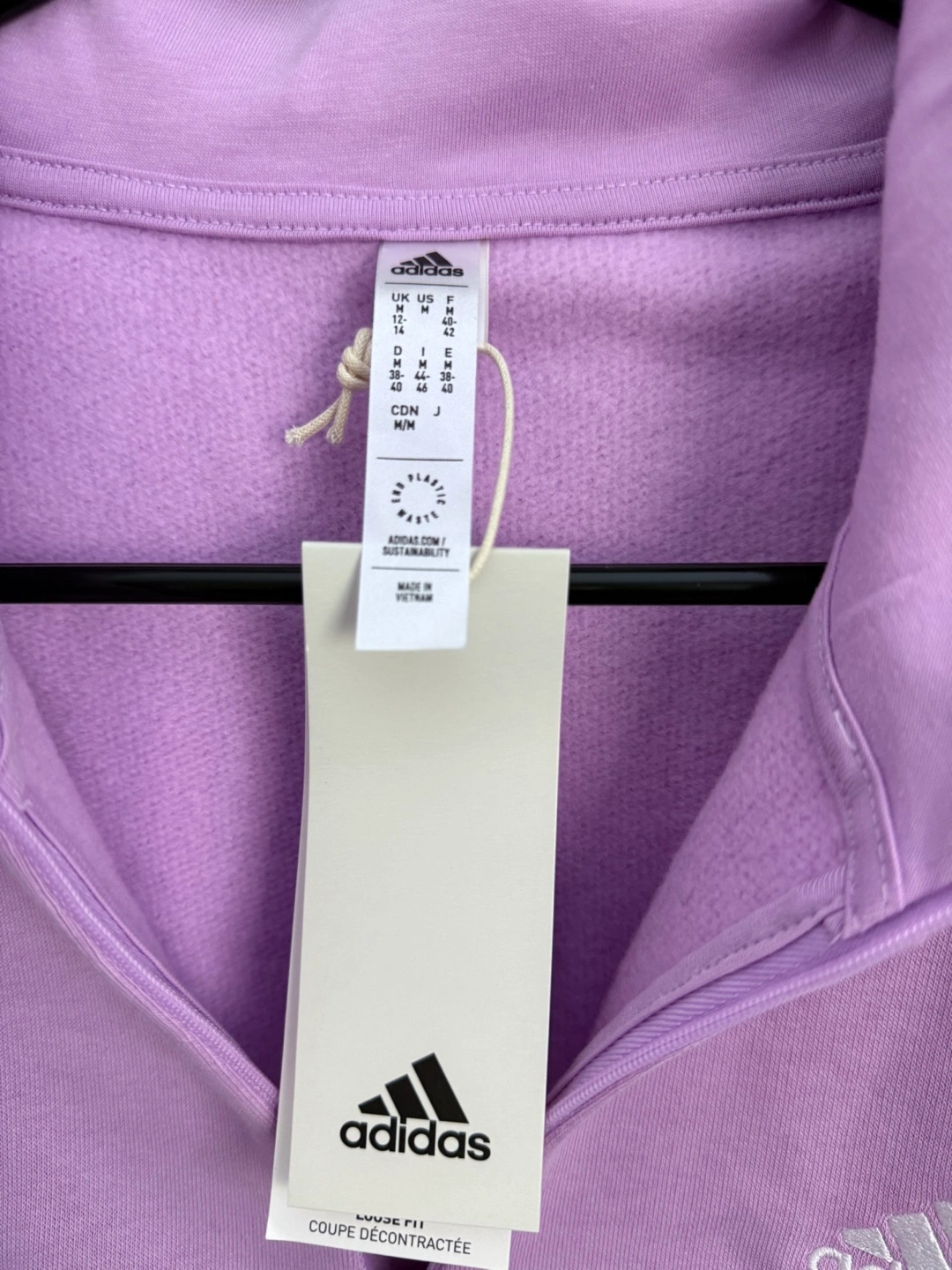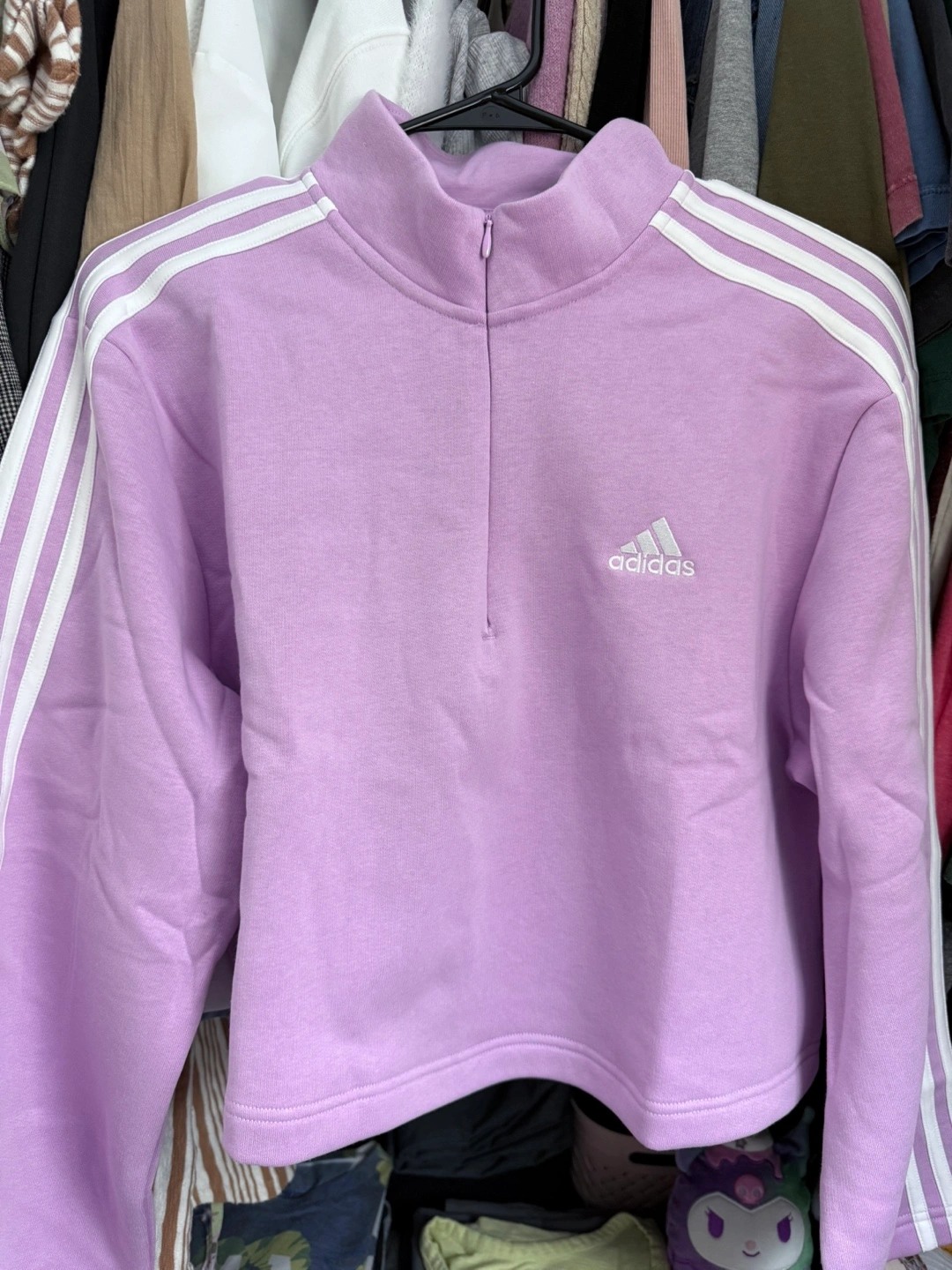 Selling a cute Adidas cropped pullover in a lovely lavender colour! It's a size M/M and features the classic three stripes on the sleeves. Perfect for layering or wearing on its own for a sporty look