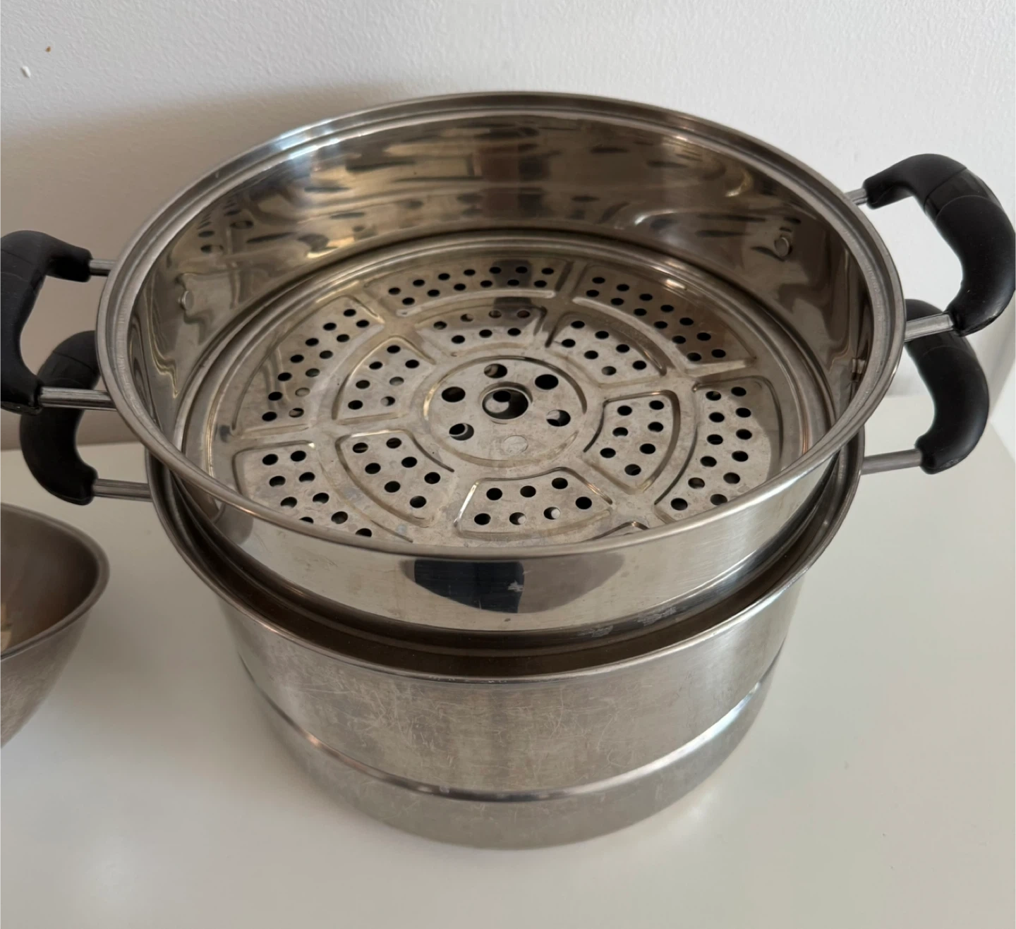 Selling a stainless steel steamer set, perfect for cooking healthy meals! It includes a variety of steamer accessories, as shown in the photos. Great for steaming vegetables, dumplings, and more!
