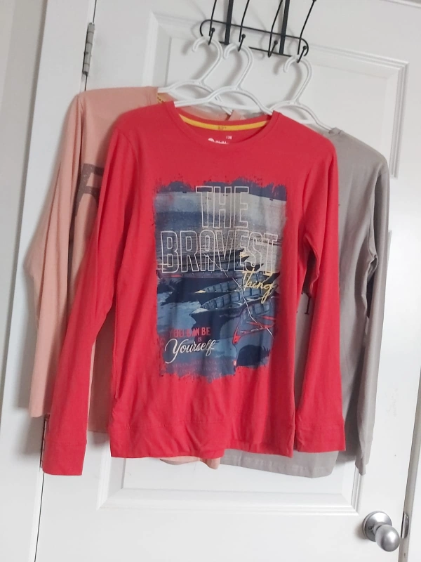 Selling a set of boys' long sleeve shirts in size 130. There's a variety of colours and designs, perfect for layering or wearing on their own. They're in great condition and ready for a new home!
