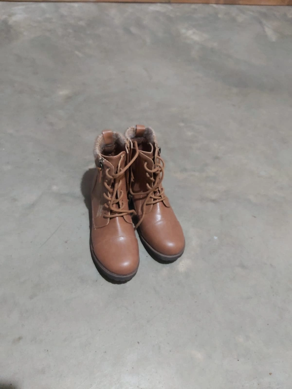 Selling a pair of brown lace-up ankle boots. They're in great shape and ready for a new home! These boots are perfect for adding a touch of style to any outfit. They feature a comfortable fit and durable construction, making them ideal for everyday wear.