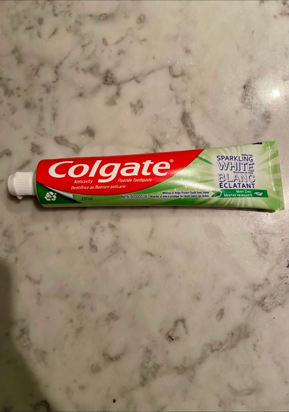 Giving away a tube of Colgate Sparkling White Anticavity Fluoride Toothpaste! It's a 120ml tube that whitens and helps protect your teeth from stains. It also has a mint zing flavour!