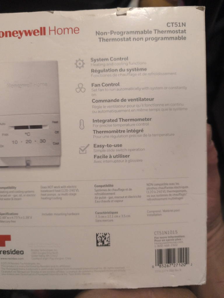 Selling a Honeywell Home CT51N Non-Programmable Thermostat. It's compatible with heating and cooling systems. Includes mounting hardware and easy-to-use slide switch operation. Box is included!