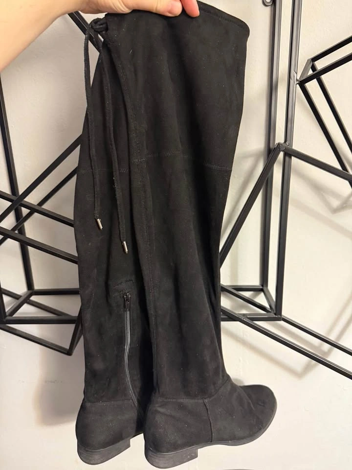 Over the knee boots, black, suede-like, size 7.5. Only worn a couple of times and have been stored otherwise, too small for me now is why I’m selling. Shaft height is ~21 inches from the ankle seam, pretty flat ~1 inch heel height Closest intersection for pick up is Queen St W & John St, or College & University during work week. May be able to meet elsewhere depending on location. $25 or open to offers