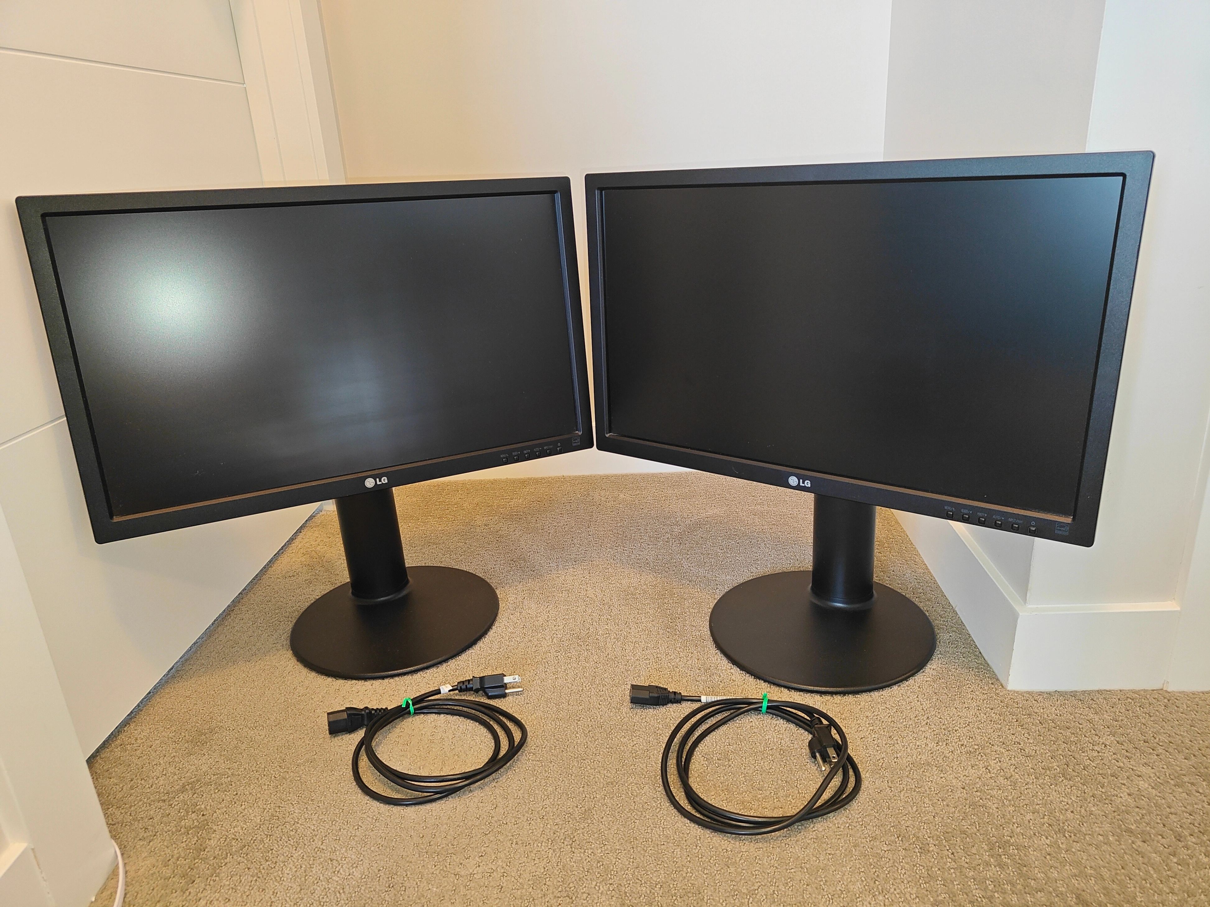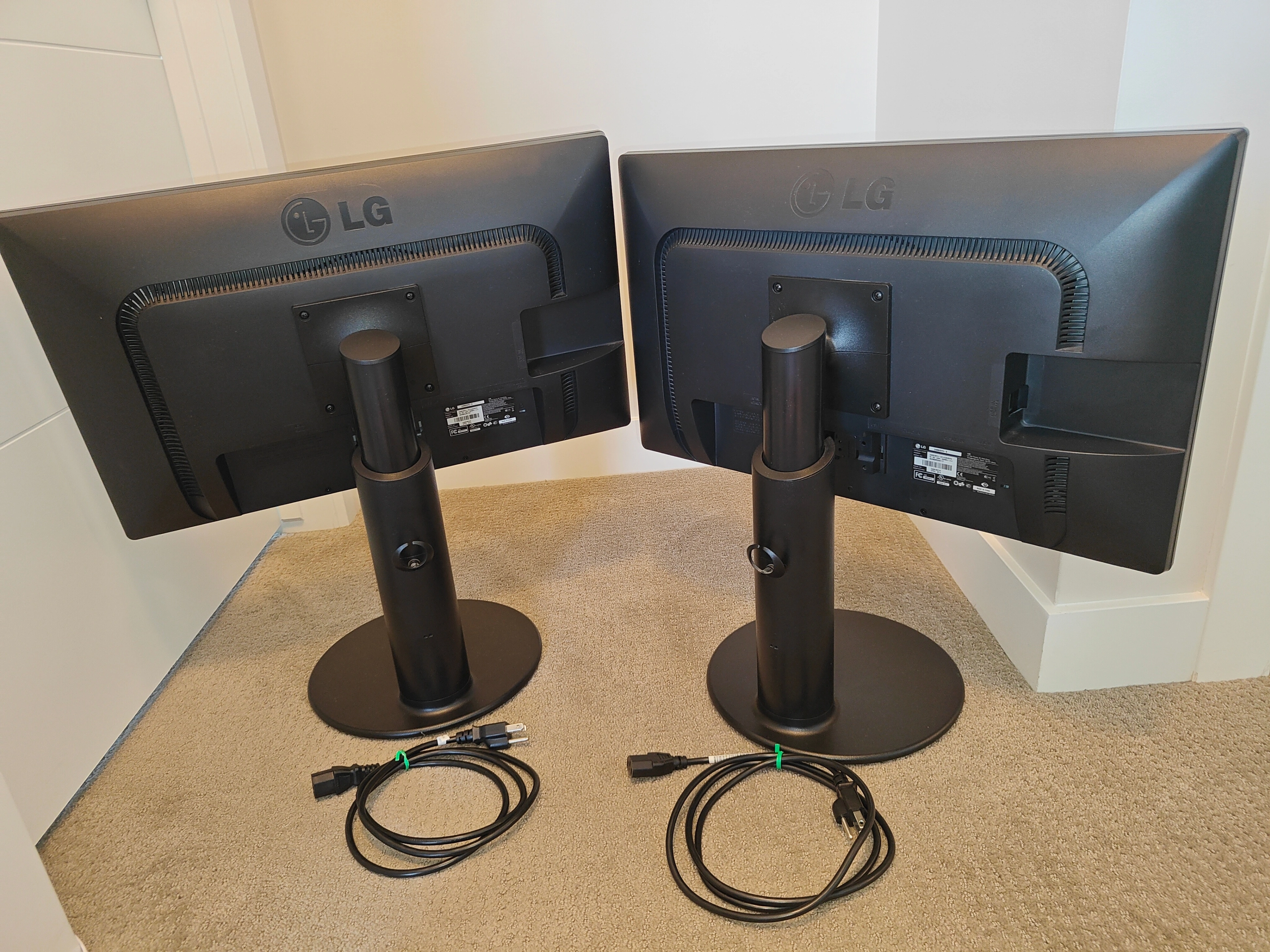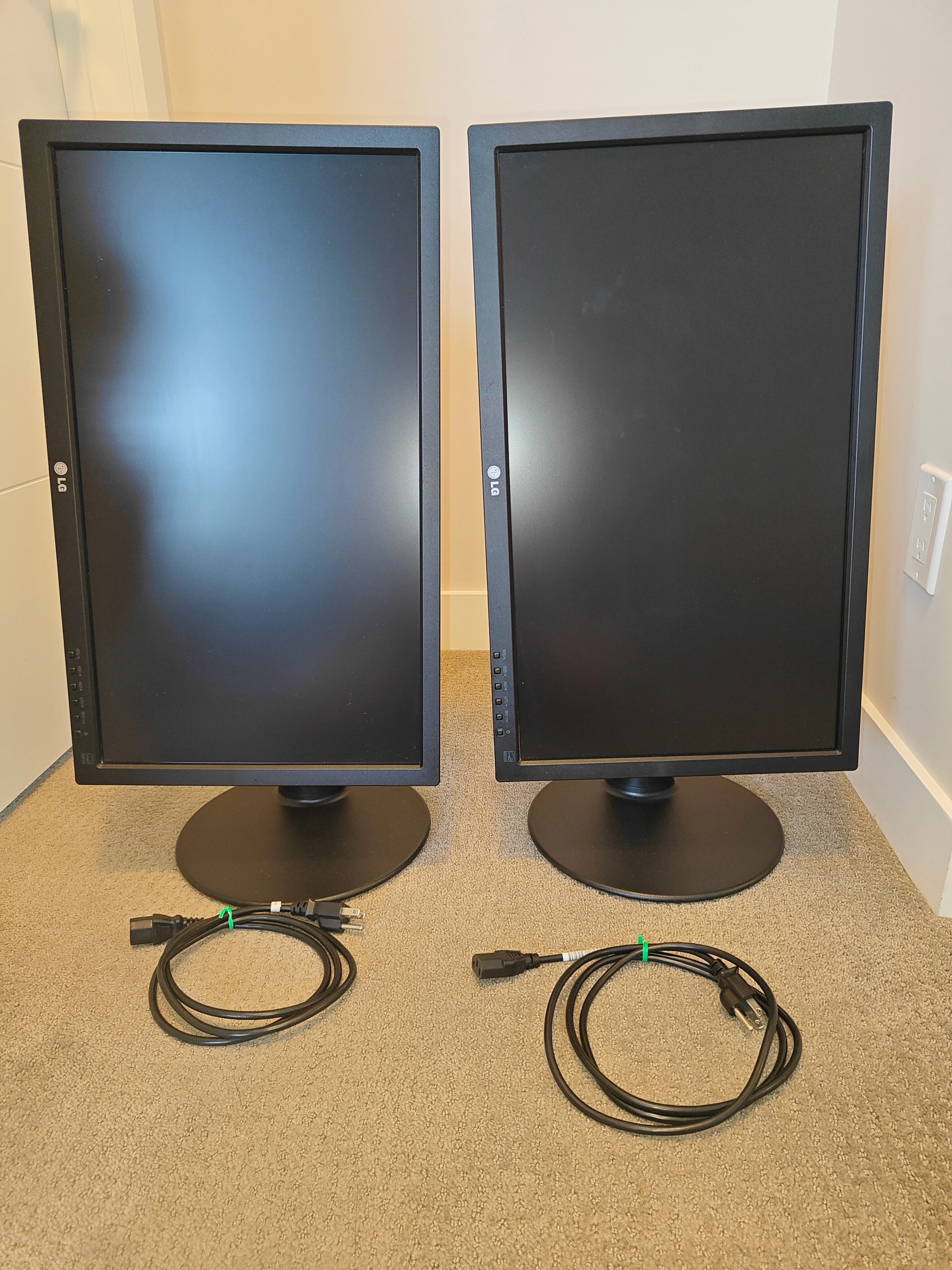 NOTE 1: Only the power cable is included, does NOT include DVI or VGA cables NOTE 2: An upstream USB cable is required for the onboard USB ports to work on the monitor, this cable is not included as we do not have one. NOTE 3: There is no HDMI port, just VGA and DVI. I am selling a Dual Pair LG 24MB35PU-B 24 inch IPS LED Computer Monitors Displays in used, tested, and working condition. There are no dead pixels or scratches on the screen. Perfect for a home office, gaming, or general use. These monitors are in great, tested, and working condition with no issues. What's Included: * 2x LG 24MB35PU-B monitors * 2x Monitor stands (VESA mount compatible: 100mm x 100mm) * 2x Power cords Key Features: * Adjustable Stand: Offers tilt, swivel, height, and pivot (90° rotation) adjustments for a customized viewing experience. Specifications: * Panel Type: IPS (In-Plane Switching) * Screen Size: 24" Class (23.8" diagonal) * Connectivity: DVI, D-Sub (VGA), USB Hub (2x USB 2.0 ports) * Resolution: Full HD (1920 x 1080) * Aspect Ratio: 16:9 * Brightness: 250 cd/m² * Contrast Ratio: 1000:1 (typical), 5,000,000:1 (dynamic) * Response Time: 5ms * Color Depth: 16.7 Million Colors * Viewing Angle (H x V): 178°/178° * Surface Treatment: Anti-Glare 3H * VESA Mount: 100mm x 100mm * Dimensions (with Stand): 22.4” x 10.7” x 17.0” (W x D x H) * Weight (with Stand): 11.2 lbs Comes from a pet and smoke-free environment. Pickup in Mount Pleasant (NW Calgary)