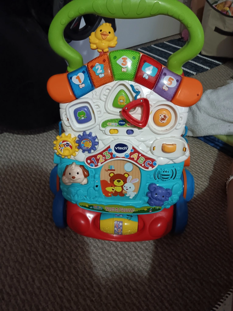 Selling a VTech Sit-to-Stand Learning Walker, perfect for little ones learning to walk! It's in great condition and provides lots of fun and interactive play