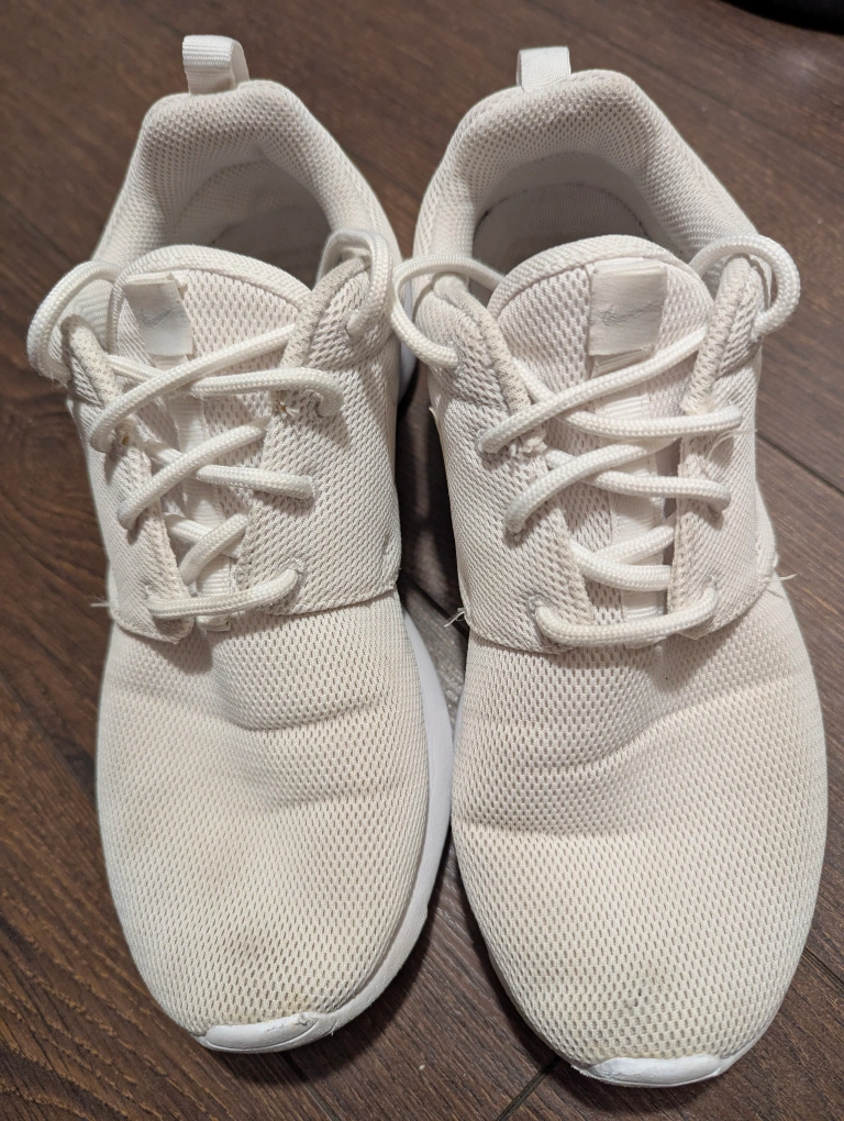 Selling a well-used white Nike Roshe shoes. It's been washed/cleaned to the best of my abilities; still has some life to them. Size 7 Women's. Price is firm, cash only (i.e. NO e-transfers). Pick up only (i.e. NO shipping). Pick up location: East York - near Bermondsey Rd. & O'Connor Dr. intersection