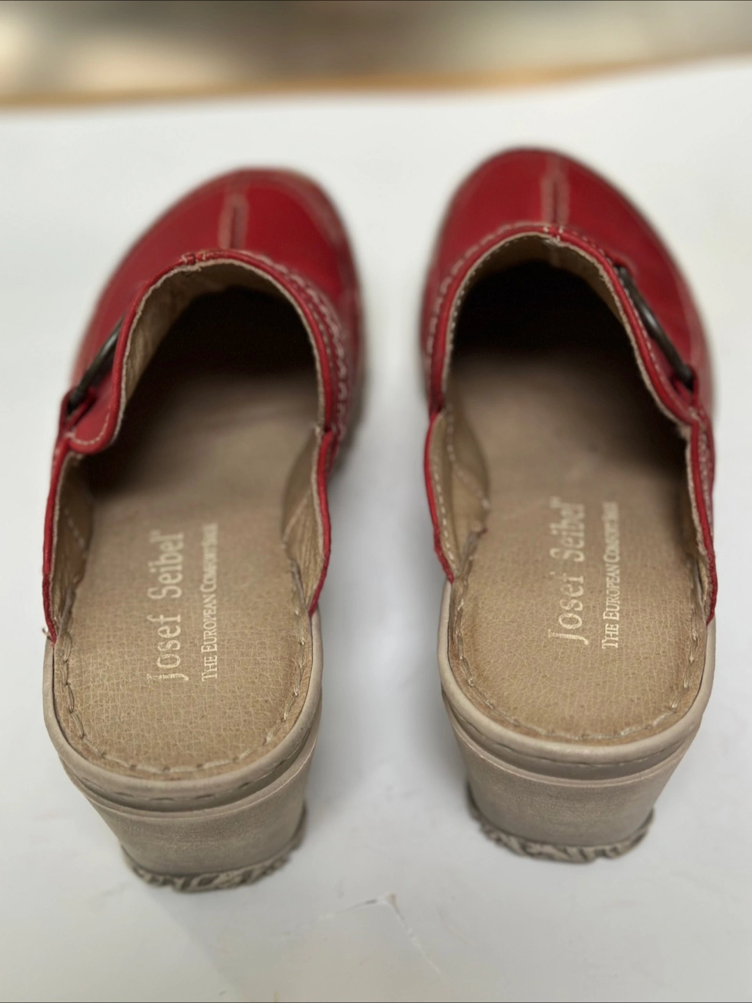 In very good pre-loved condition. Selling this pair of Josef Seibel nubuck leather clogs in red leather. These have a Spirit Nature design and are in good condition, ready for a new home! Size EU 38/ 7 - 7.5 These shoes have been meticulously cleaned and sanitized. From a smoke free, pet free home. Pick up in Alta Vista.