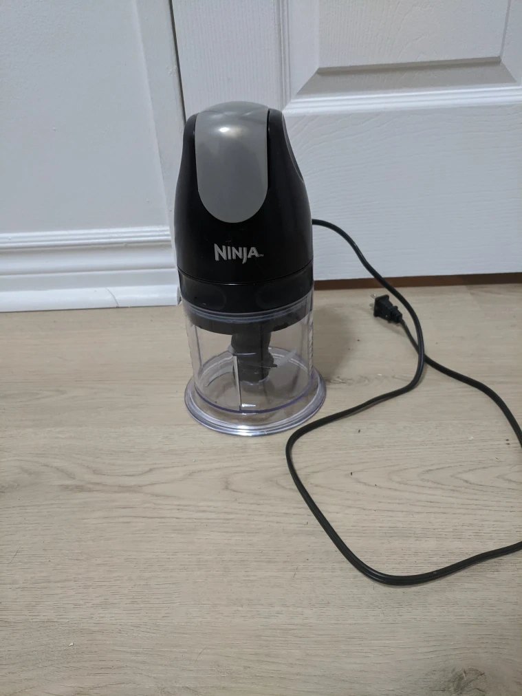 Selling a Ninja food chopper in great condition! It's perfect for quickly chopping vegetables, fruits, and more. It comes with all the components you see in the pictures: the chopper, blade, bowl, and lid. It's easy to use and clean, making meal prep a breeze. used but good condition. Pick up at 195 Merton Street Toronto Or pick up at Subway station Davisville. And I can deliver it to your house but you need to pay me another $3. Thanks.