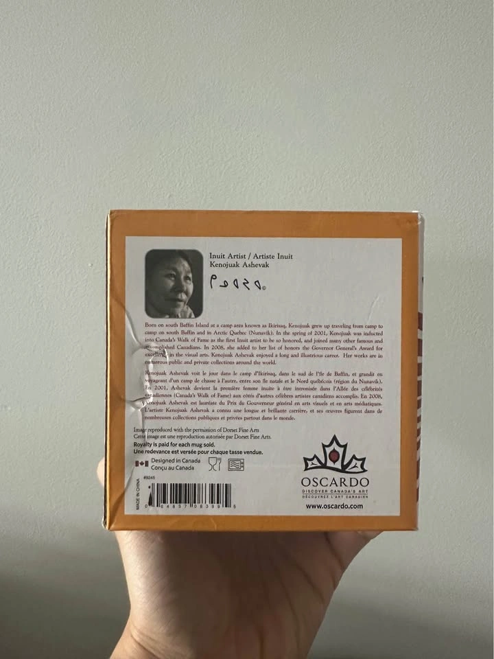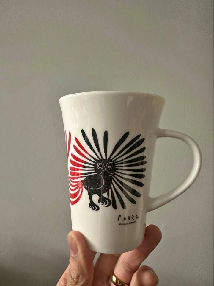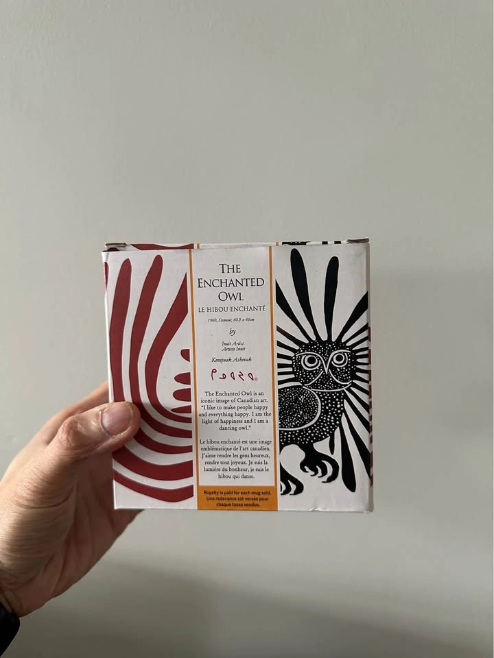 The Enchanted Owl Fine Porcelain Mug. Original Inuit Canadian designs. *Please note that the box is a bit damaged in the back*.