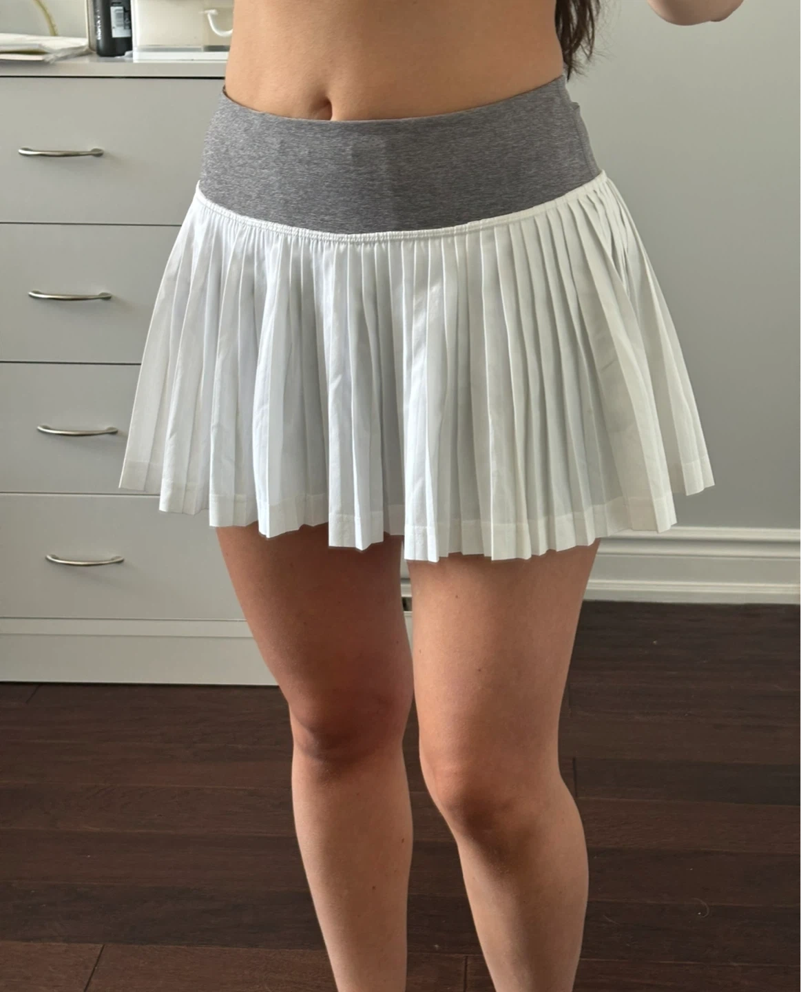 •Has built in shorts •Fits true to size •Waist 25” •Length approx. 11.5” •Few minor marks on the pleats (see close-up photos), otherwise in excellent condition