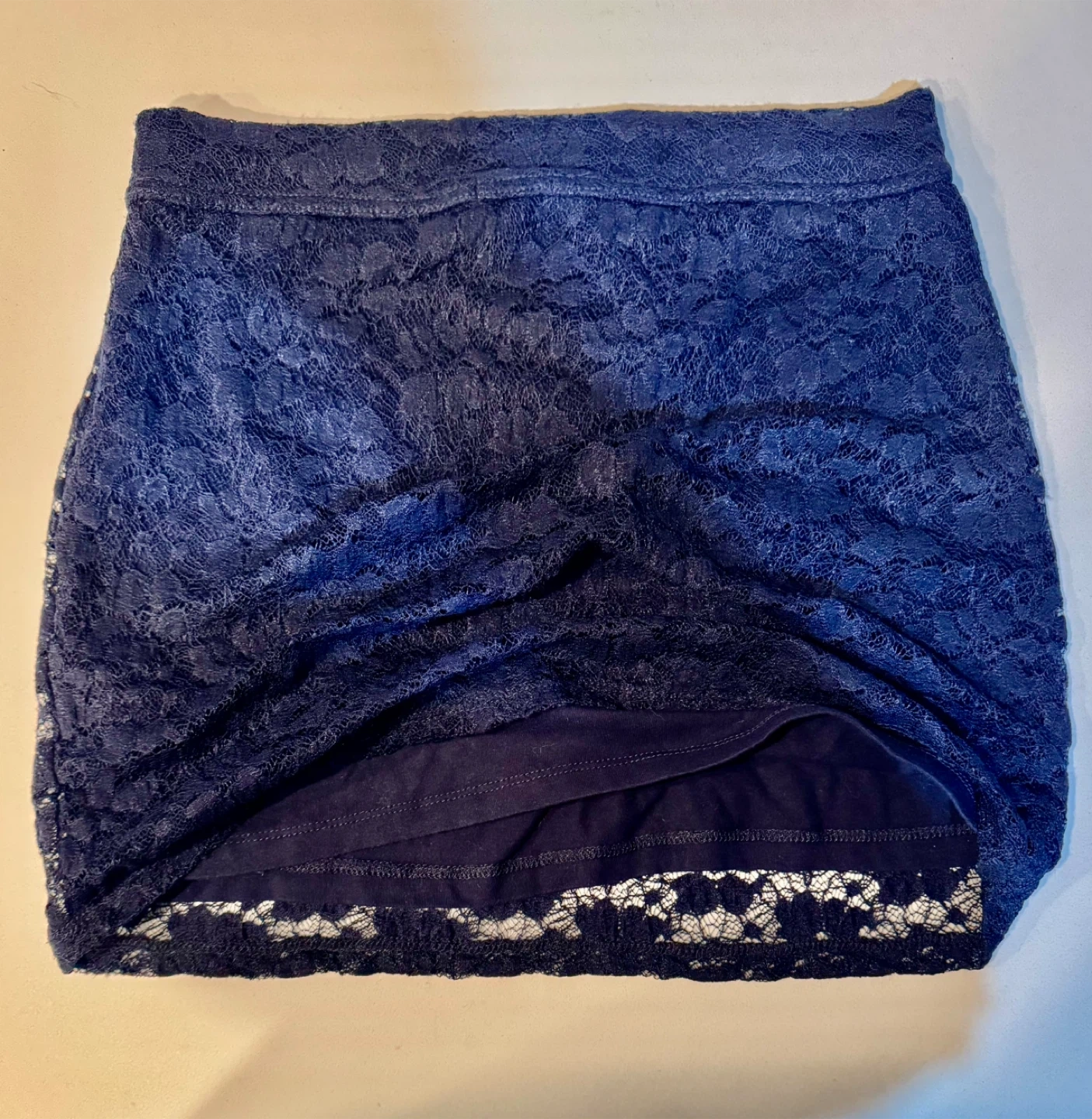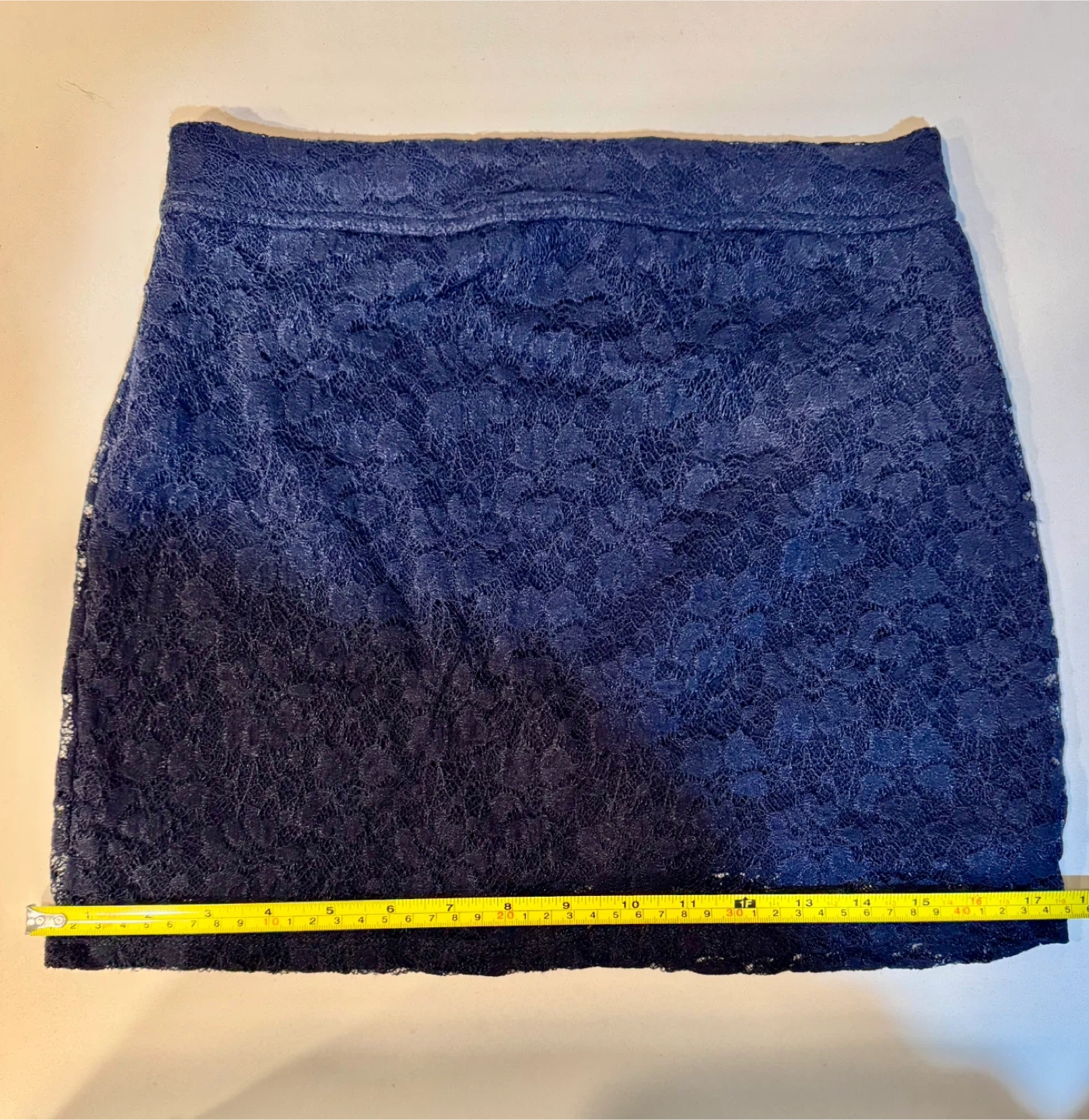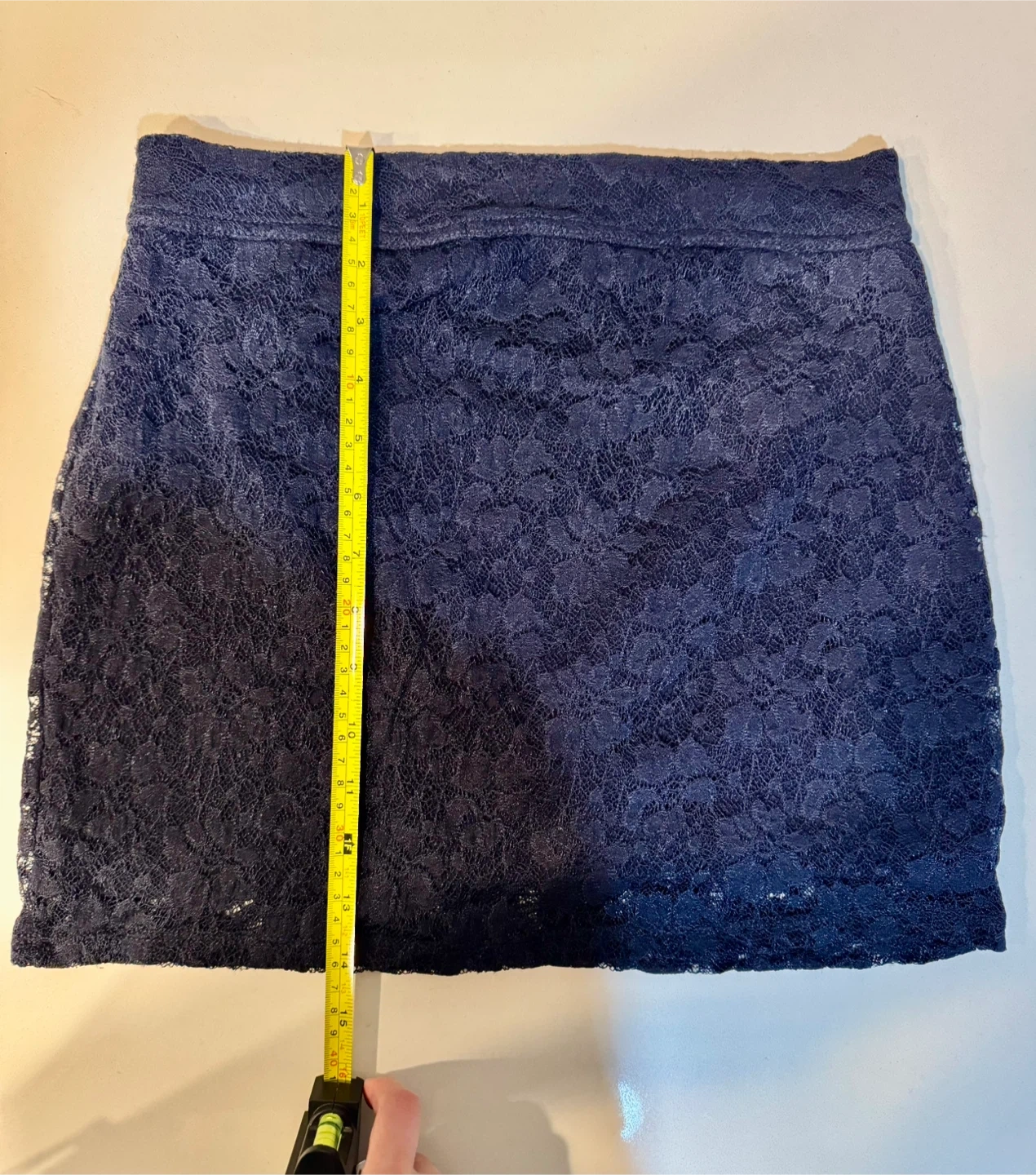 Forever 21 Blue Lace Mini Skirt - Size M Selling a cute Forever 21 mini skirt! It's a size medium and features a pretty blue lace design. Perfect for dressing up or down!