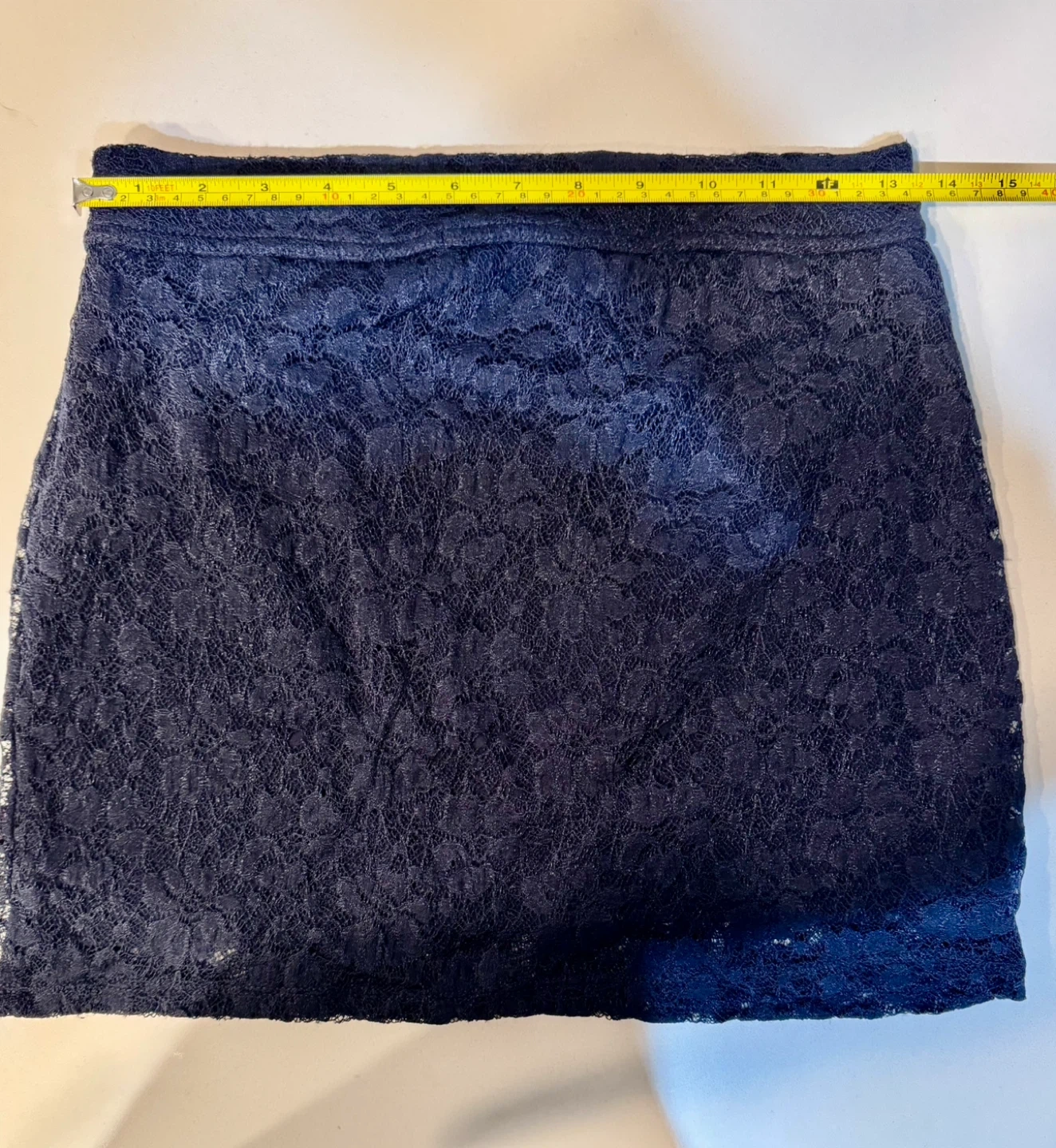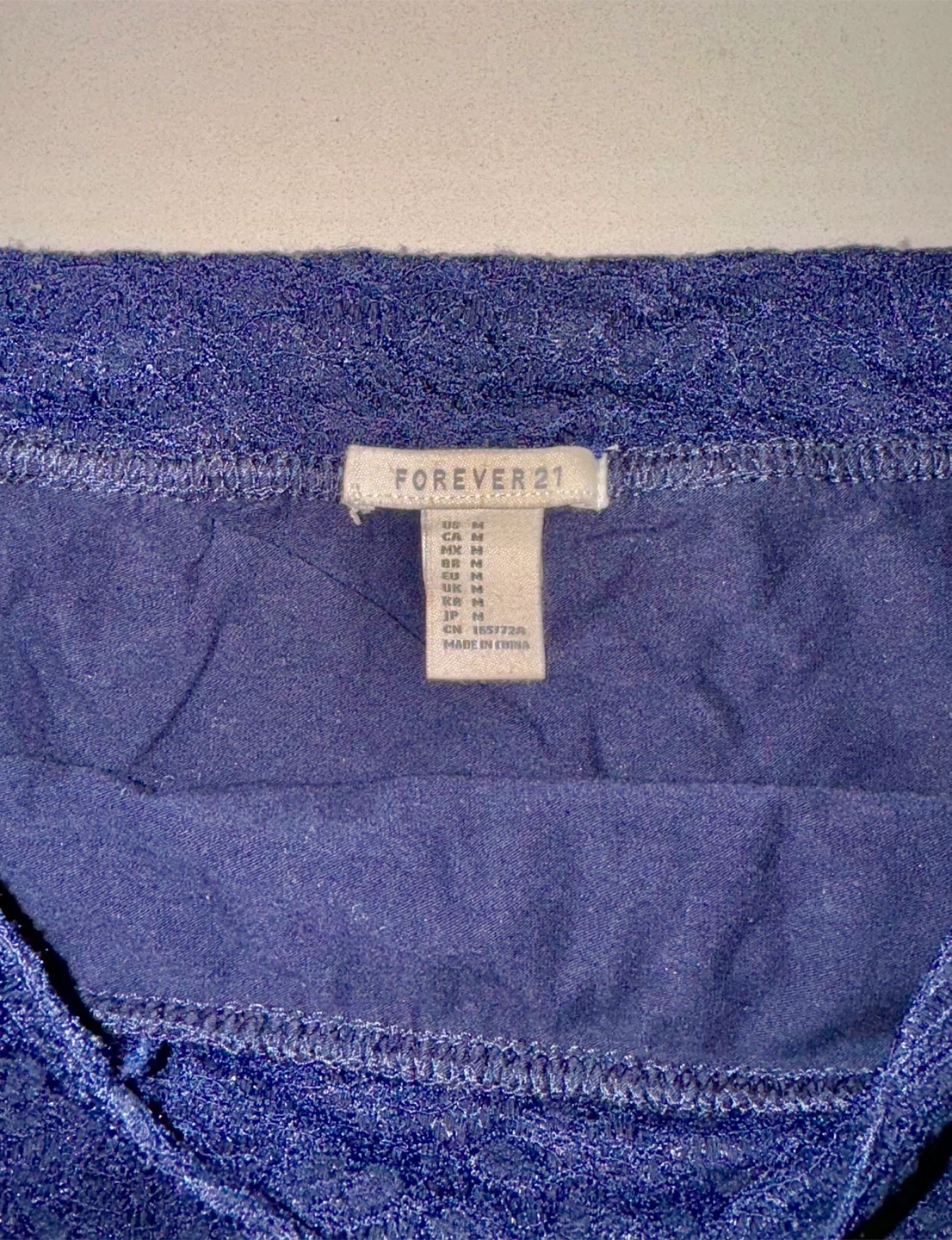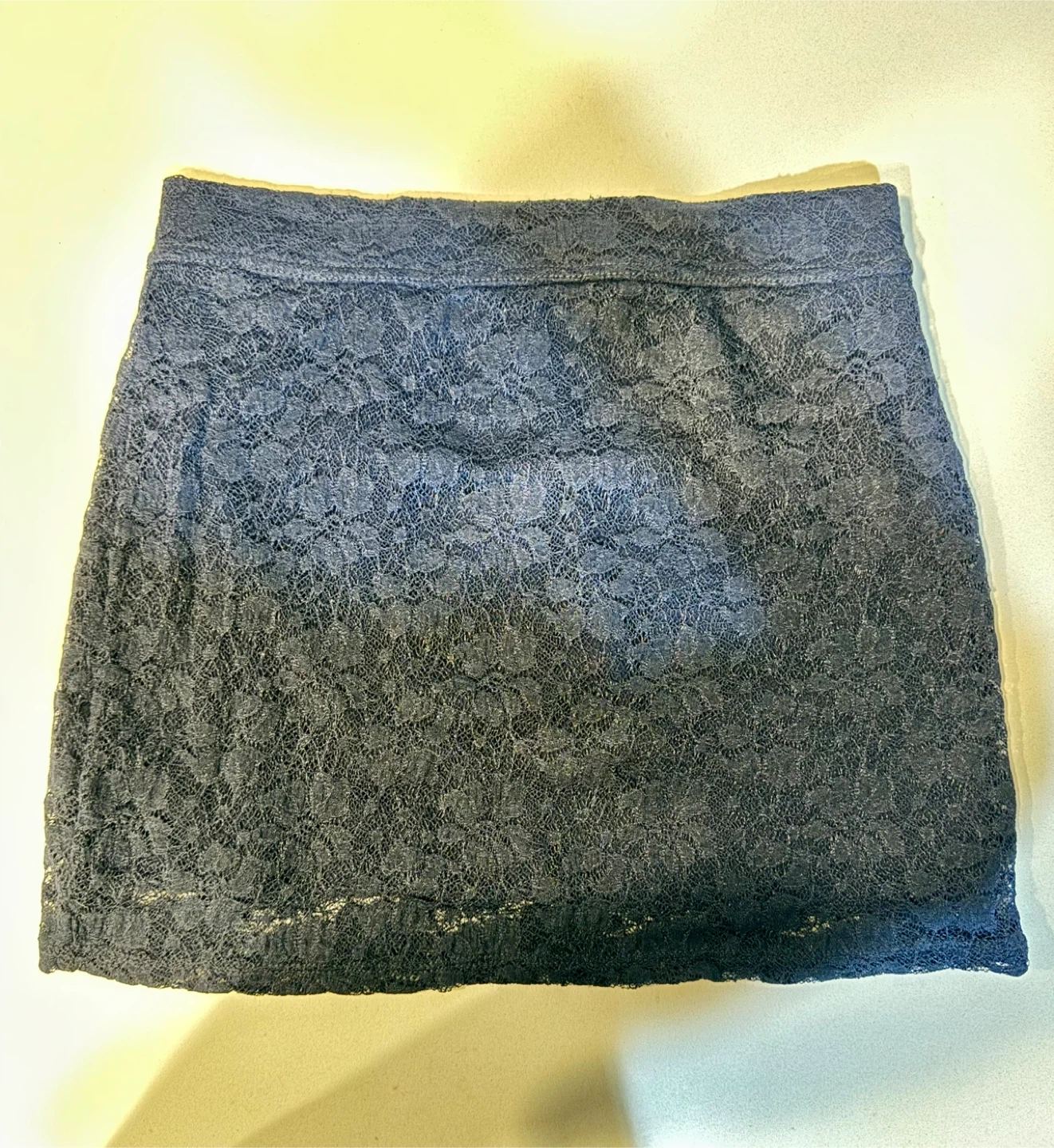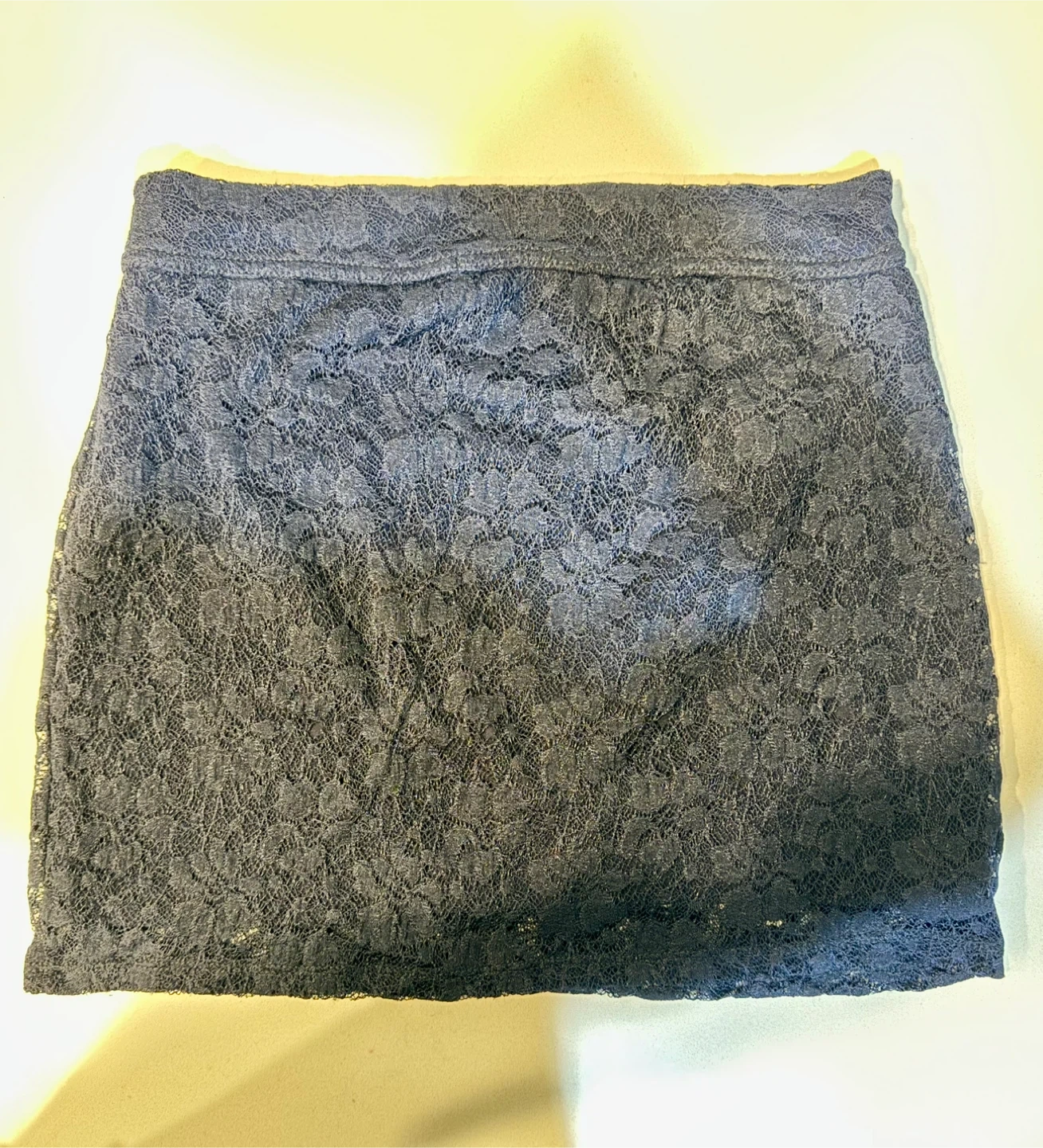 Forever 21 Blue Lace Mini Skirt - Size M Selling a cute Forever 21 mini skirt! It's a size medium and features a pretty blue lace design. Perfect for dressing up or down!