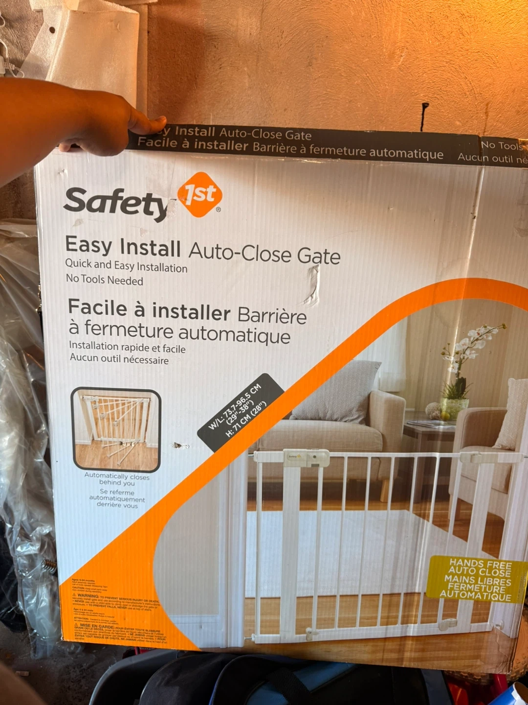 Selling a Safety 1st Easy Install Auto-Close Gate. It's quick and easy to install, and no tools are needed. The gate automatically closes behind you. The width/length is 73.7-96.5 cm (29-38 inches), and the height is 71 cm (28 inches)