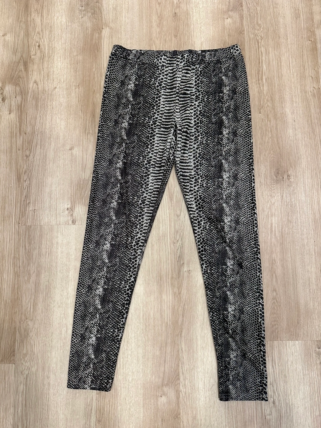 Snakeskin print leggings in a black and grey colour. They are in excellent condition and ready for a new home! They’re new without tags but I put like new as they’ve been washed as they’ve been sitting in storage.