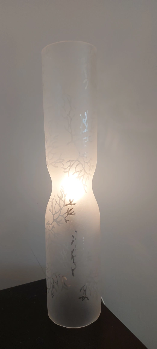 Selling a frosted glass table lamp. It has a unique design etched into the glass. It's in great shape and gives off a nice, soft light Pick up 31 King Street York