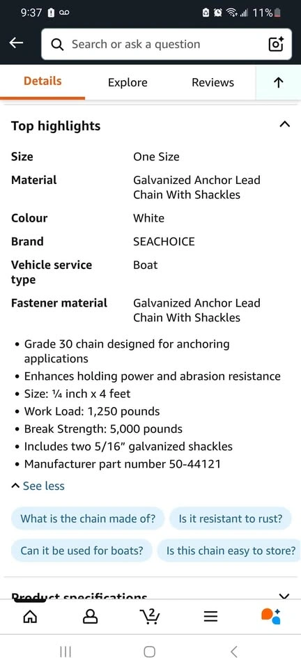 New in box Anchor Lead Chain by Seachoice. 1/4" x 4ft