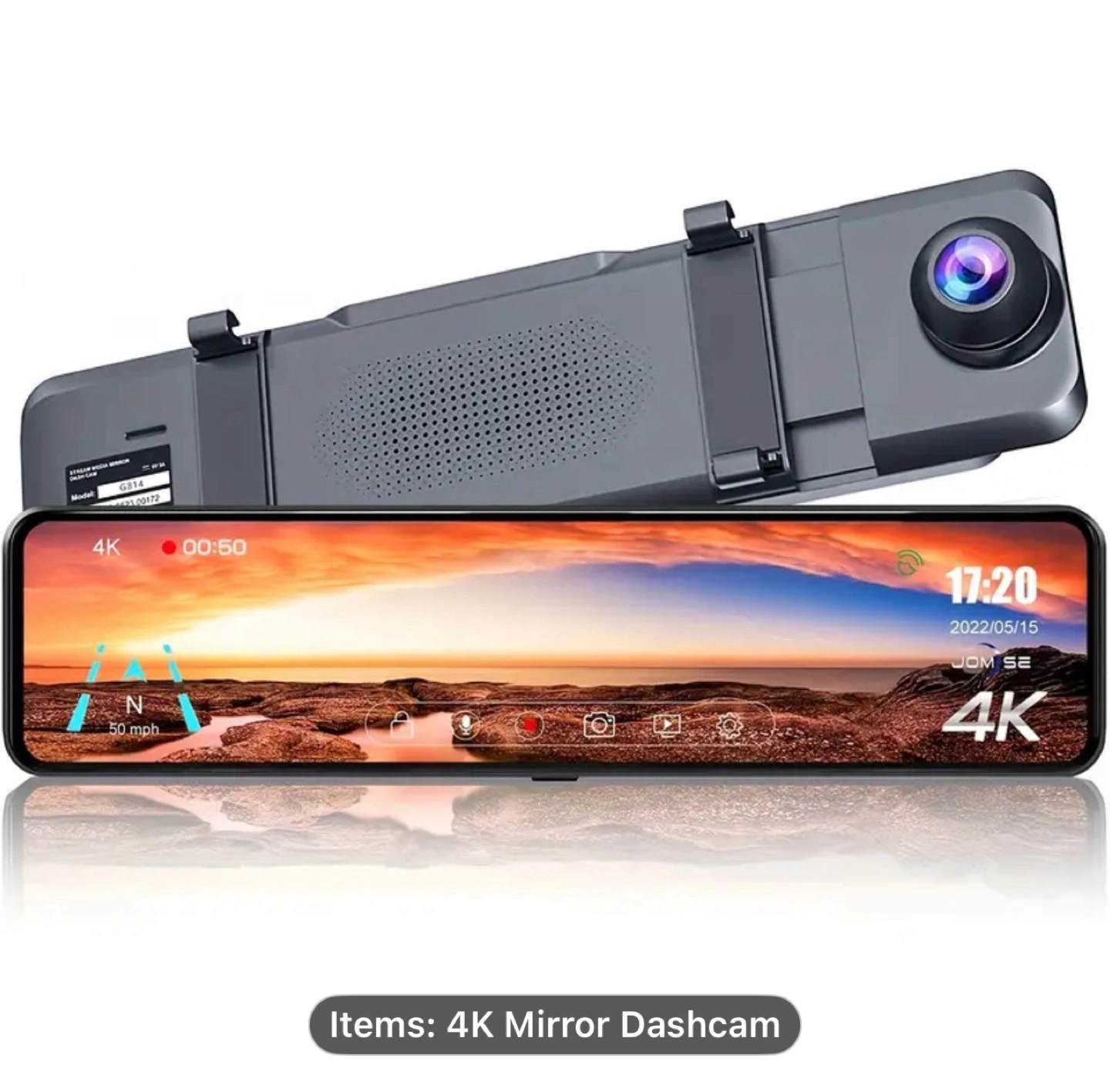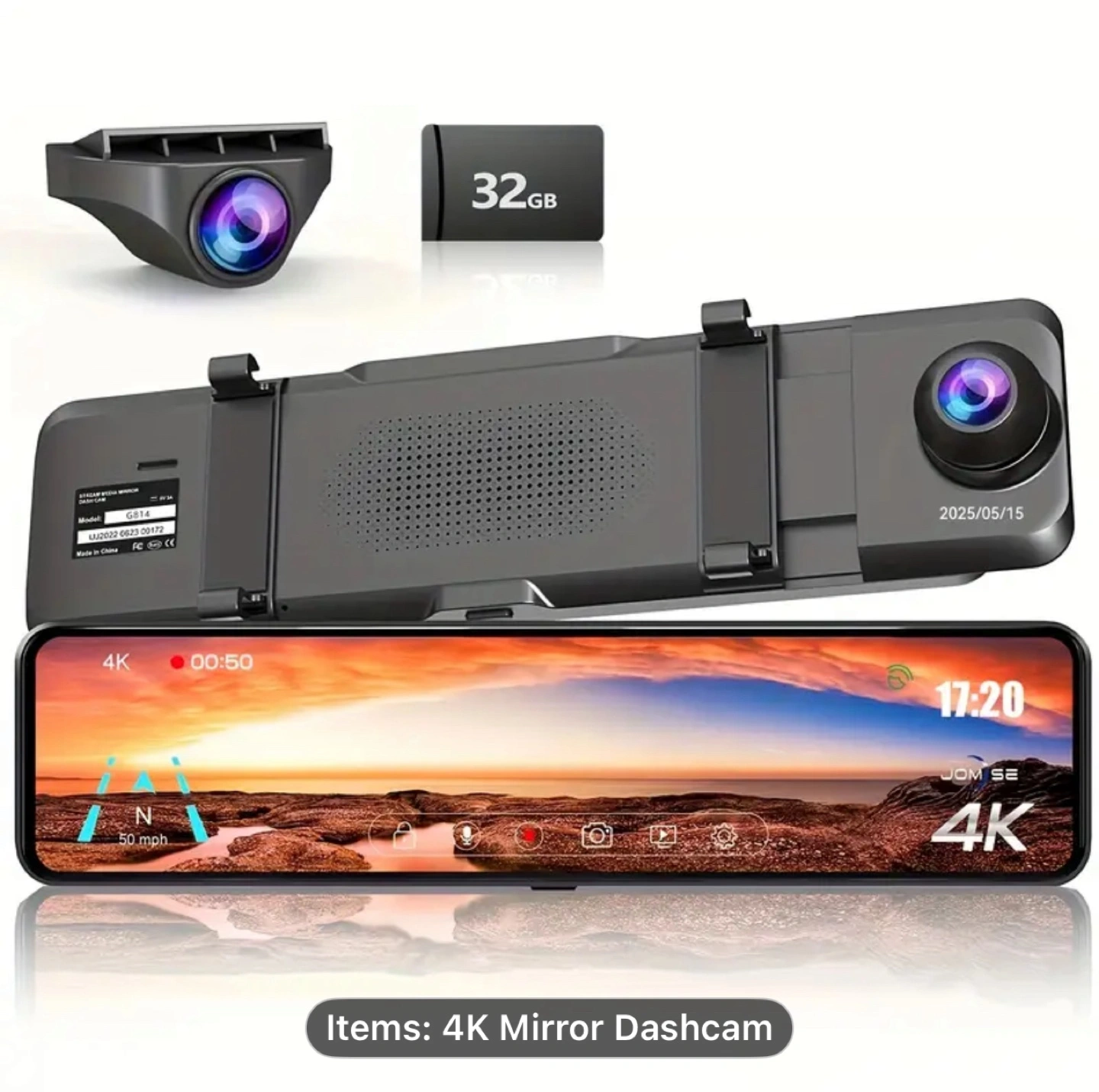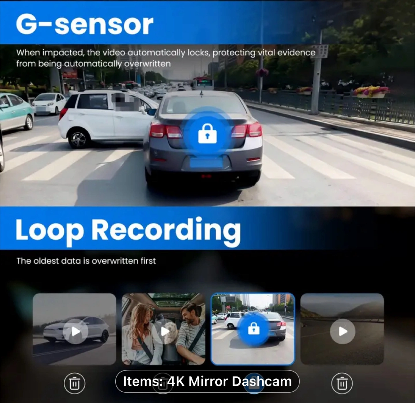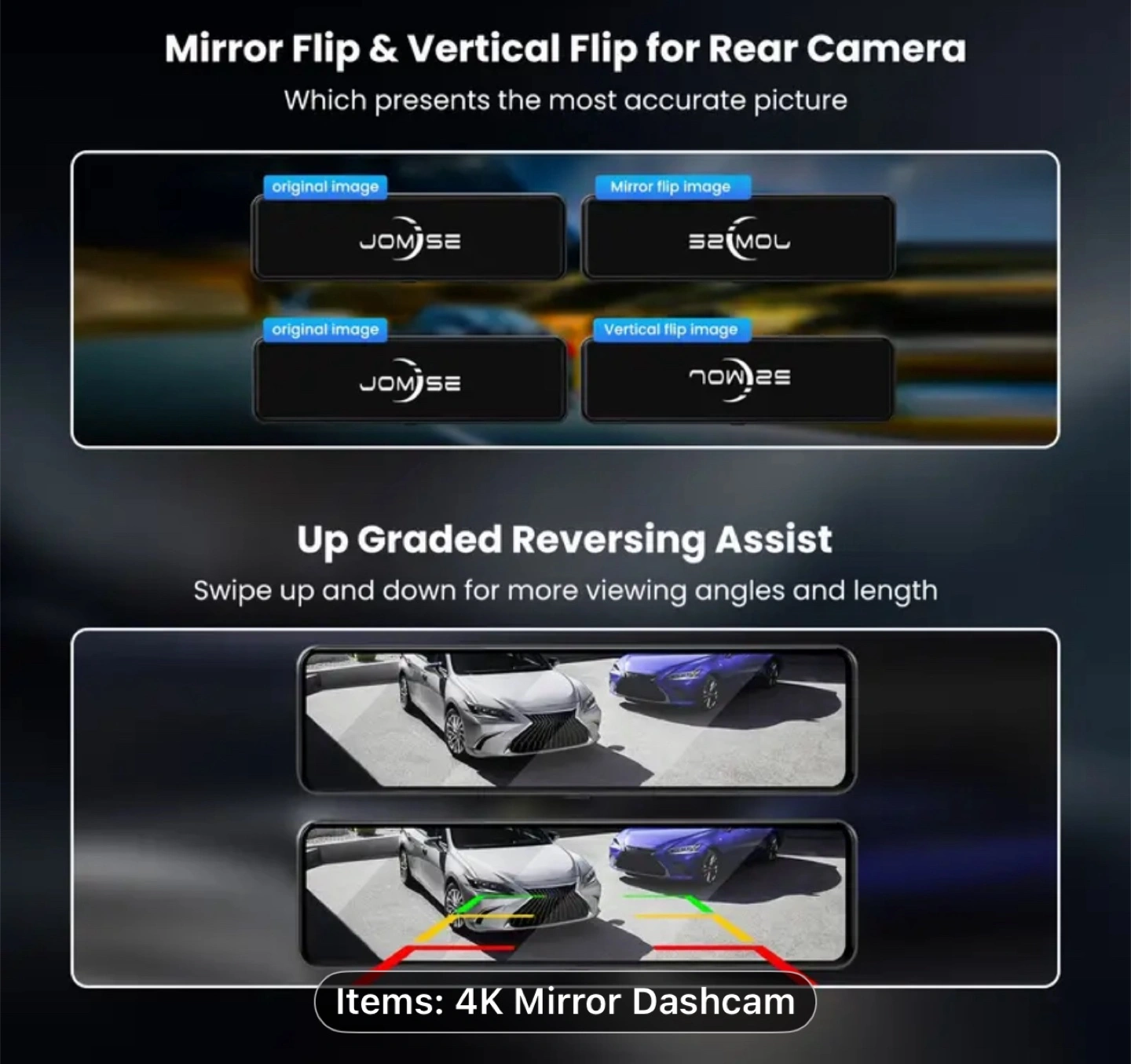 4K Mirror Dash Cam Front And Rear, Rearview Mirror Camera For Cars & Trucks With 11" IPS Touch Screen, Backup Camera With Type-C, Starvis Sensor. Cash only please [LOOK AT ME!!!] The rear camera cable length provided in our original package is about 19ft. It is suitable for the vast majority of cars. If it is too short for your vehicle model, please click on the store name (highlighted) below the product title to enter the store and select the appropriate 10 meter (33ft) rear camera extension cable based on the product model you purchased. If you have any questions, please contact Customer Service Support in the USER MANUAL. [ Why We Use Type-C? ] We complete the upgrade of the Type-C interface designed for dash cams. This new version is ultra-thin but with more funct-ions. For example, it boasts 24 built-in pins, supports USB3.1 high-speed transmission and can be plugged and unplugged for at least 10,000 times. Compared with the traditional mini-USB interface with 5 pins, it avoids the problems that are likel-y to occur when in use, including black screen, restart, deformation caused by high temperature and so on. [ Why We Choose 4K? ] Can your dash cam clearly capture the license plate numbers of other vehicles in front or behind at night? If not, you need the 4K Dash Cam. It owns a real 4K resolution, so it can record high-definition and smooth images no matter it is in daylight or at night, rainy or sunny. In a word, this 4K Dash Cam is an indispensable helper for you. A touch screen with a full 11-inch IPS display This streaming media dash cam adopts 11" IPS full touch screen with 1920*480 resolution. The user-friendly Ul interface will make your operation easier and more convenient. Higher resolution can restore the true color of objects to the greatest extent, provide perfect night scene pictures, and make the presentation of details such as license plate numbers and road signs more clearly. Unlike the usual reverse assist system that displays a 72-degree field of view, the rearview mirror recorder can display a 180-degree field of view, so the rear view will be much larger.