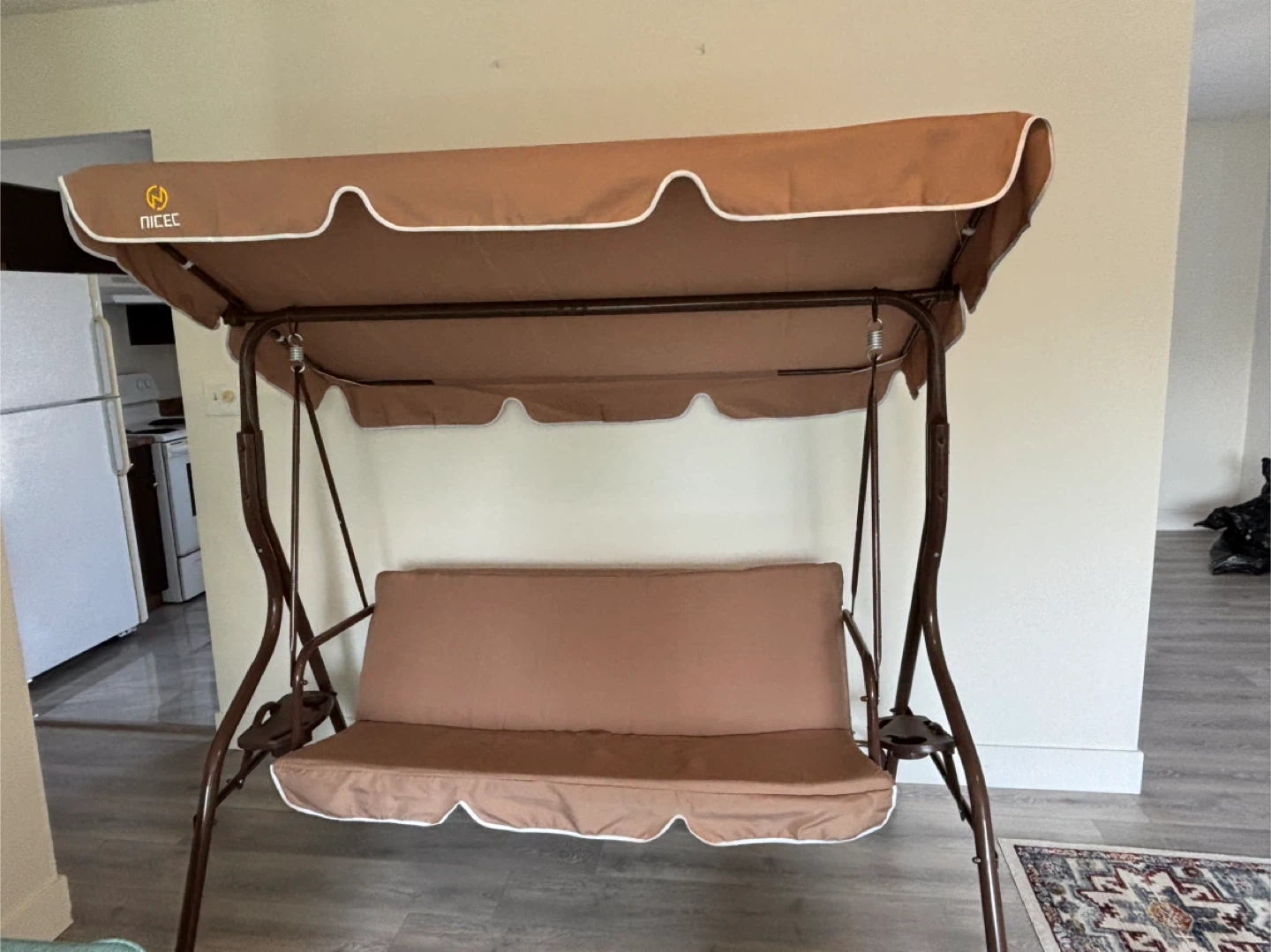 Selling my 4ft Metal Porch Swing—lightly used for only a few weeks and in excellent condition. Perfect for relaxing on your porch, deck, or garden. • Material: Durable metal with a classic design • Size: 4ft – comfortably seats 2 adults • Includes: Heavy-duty hanging chains for easy installation • Condition: Like-new, no scratches or damage