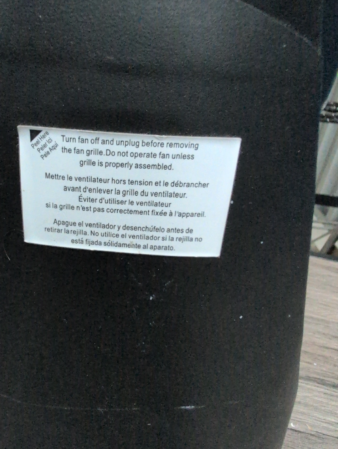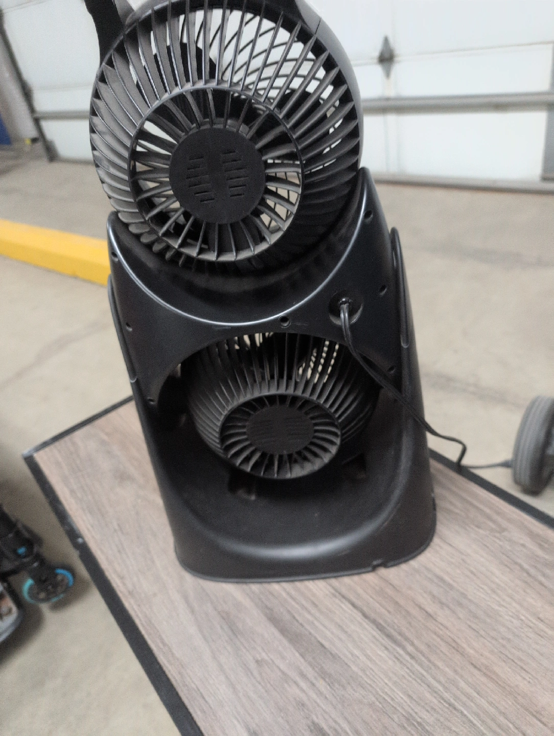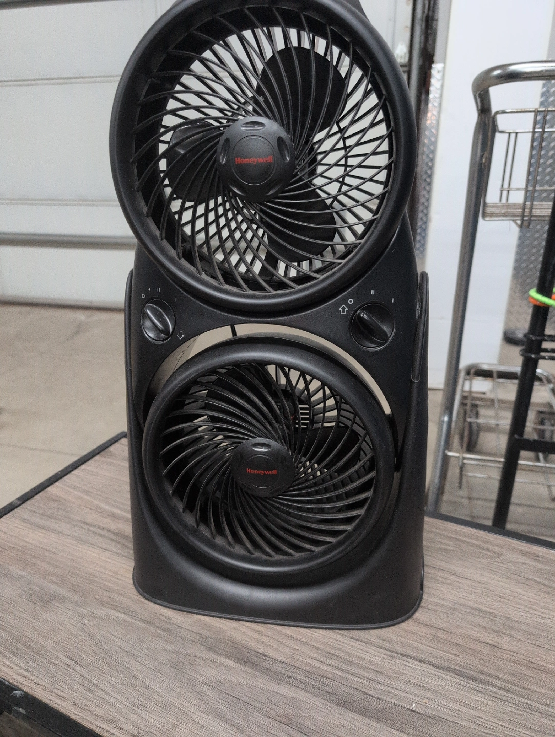 Selling a Honeywell double blade fan in black. It's in great condition and ready to keep you cool! Please turn fan off and unplug before removing the fan grille, and do not operate fan unless grille is properly assembled