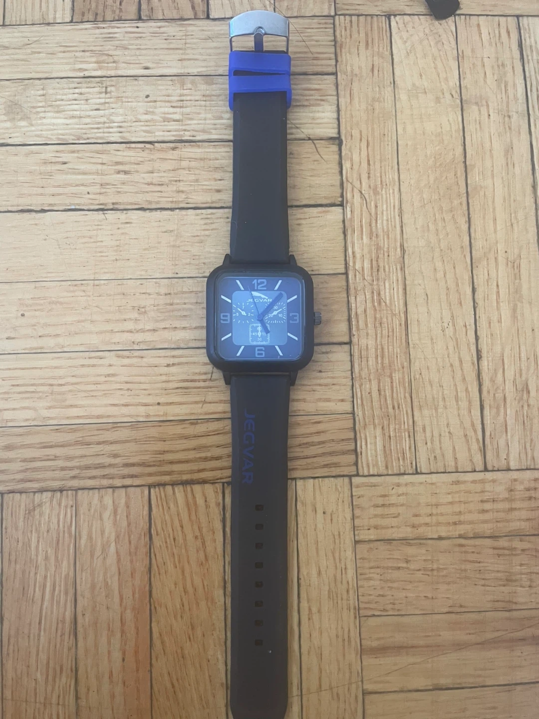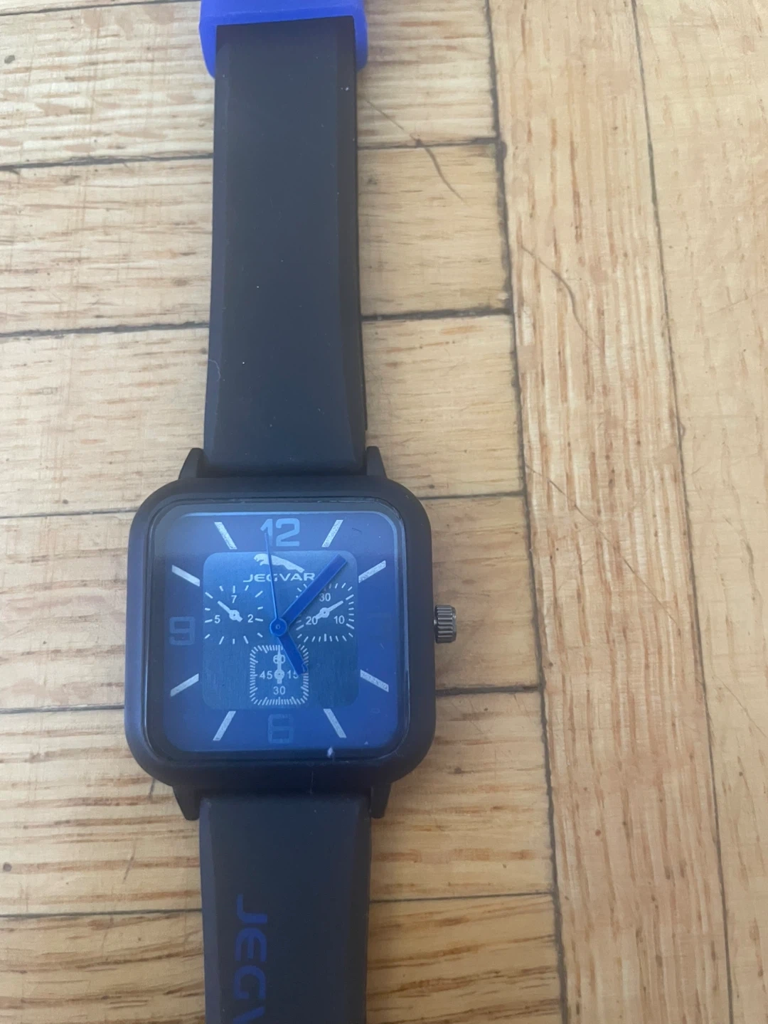 Selling a Jecvar watch with a cool blue and black design! It's in great shape and ready for a new wrist