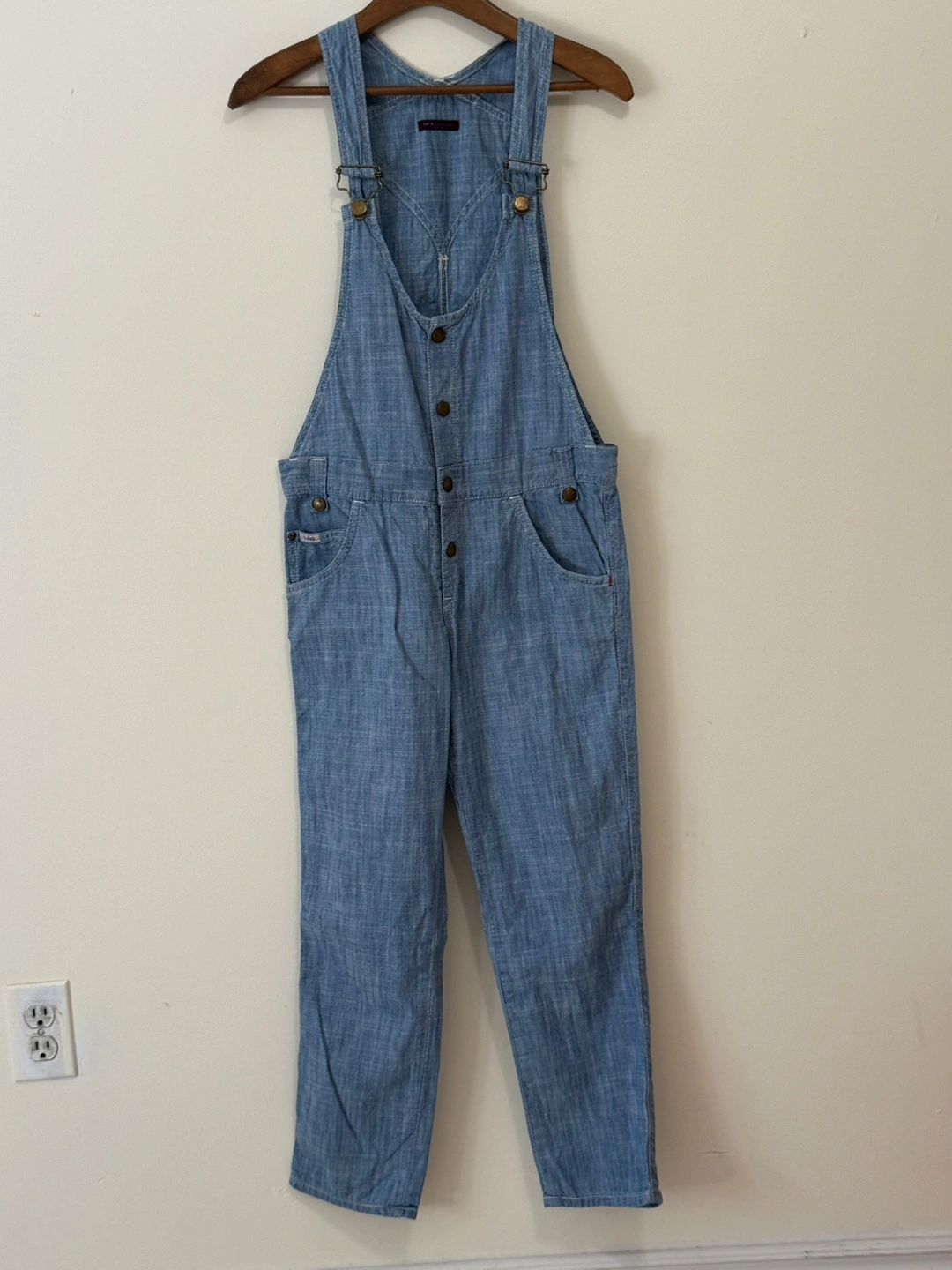 📌 Description A rare Lee × Earth Music & Ecology Violet Label denim overall, crafted from 100% cotton chambray. This lightweight workwear-inspired piece features a relaxed fit, button-up front, and classic utility pocket design. Perfect for layering with t-shirts or sweaters, it offers both comfort and style for casual outings, creative workspaces, or weekend adventures. A versatile vintage find that blends effortless retro charm with everyday practicality. ✔ Material • 100% Cotton (Chambray denim) ✔ Size: Flat Measurements • Waist: 42 cm (16.5”) • Total Length: 132.5 cm (52.1”) • Tagged size: S • Recommended size: Fits closer to S-M for Women depending on desired fit. Please refer to detailed measurements for best fit. ✔ Features • Authentic Lee branded buttons & rivets • Adjustable shoulder straps with brass hardware • Front button closure • Utility-style front & back pockets • Cross-back strap construction • Collaboration piece: Lee × Earth Music & Ecology Violet Label • Made in Japan 📌 Condition • Overall in excellent vintage or secondhand condition. Due to the nature of items, there may be minor signs of wear, such as slight stains or small imperfections. Please NO negotiation & trade The price is firm
