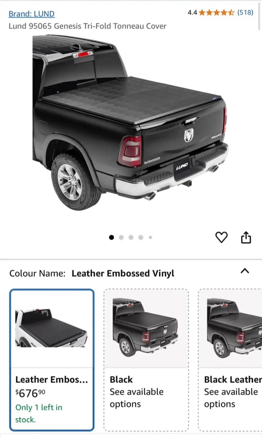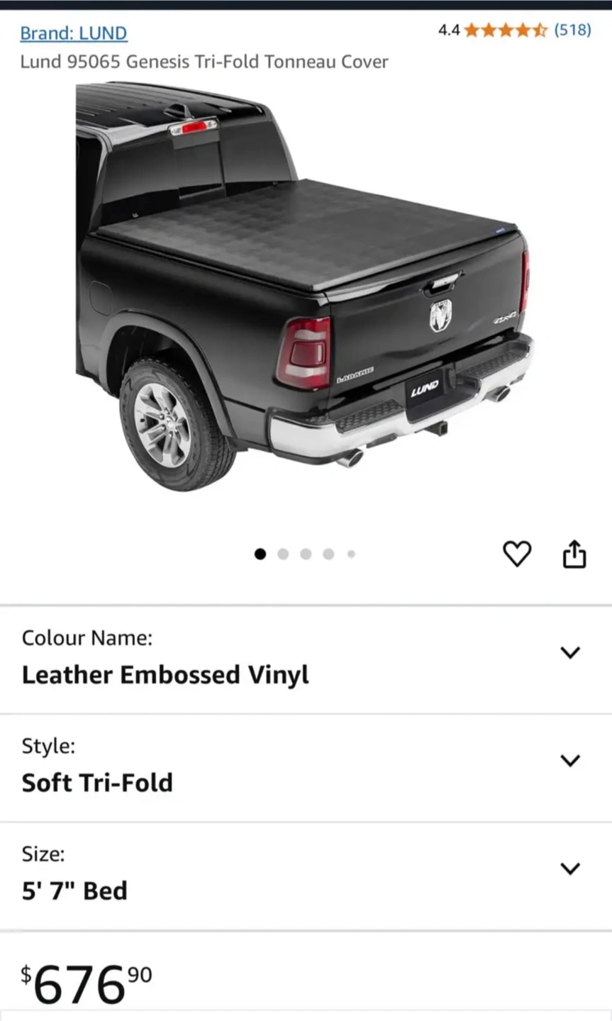 Lund 95065 Genesis Tri-Fold Tonneau Cover Leather Embossed Vinyl For 5.7ft truck Bed Dodge Ram 1500 Fits: 2009-2022 Dodge Ram 1500 Retail Amazon: $676.90 + tax Tdot Performance: $568.98 + tax Asking: $400 Brand new never installed Comes in box opened for photos Pick Up Waterdown Area