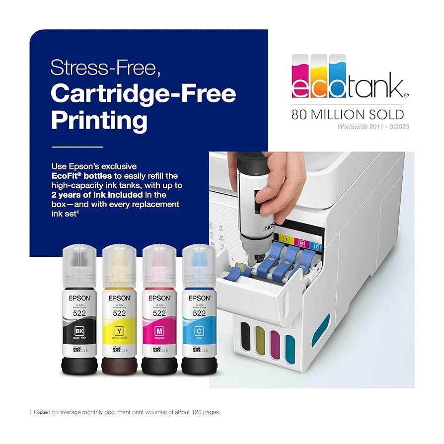 Looking to sell my Epson ET-4850 EcoTank printer! It's a great printer that uses ink bottles instead of cartridges, which means zero cartridge waste. It's stress-free and easy to refill with Epson's exclusive EcoFit bottles. Replacement ink bottle set is equivalent to about 90 individual cartridges. Retails for $399.99.