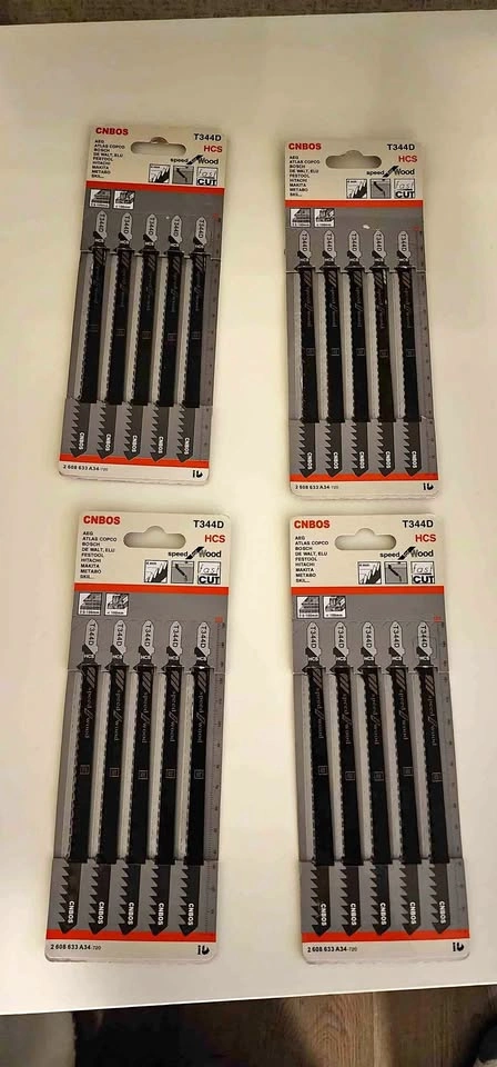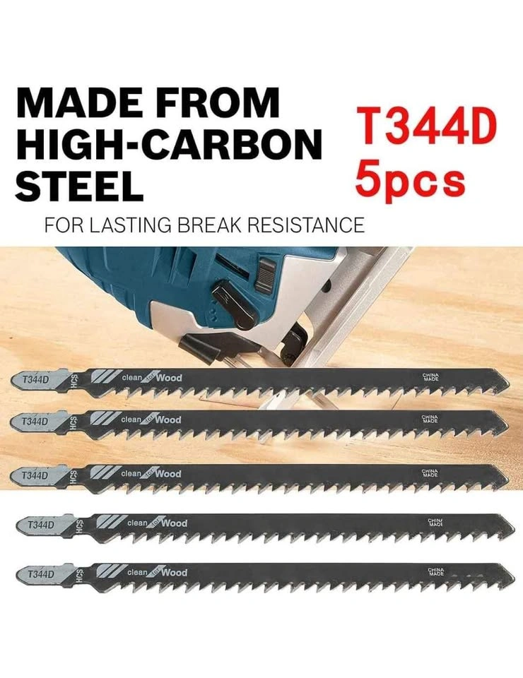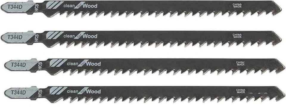 5pcs HCS T Shank Saw BlaWood Plastics Plywood Cuttingtools for Jigsaw Total length: 152 mm Working length: 125mm Tooth spacing: 4mm Areas of application: 5-100mm Package Included: 5 x T344D Jigsaw blades Pick it up in Oakville near Dundas and Trafalgar