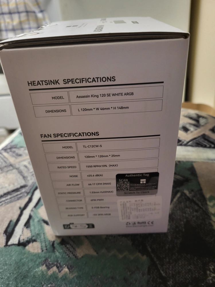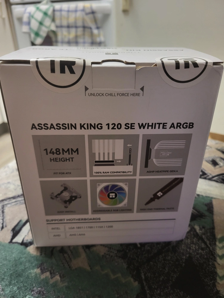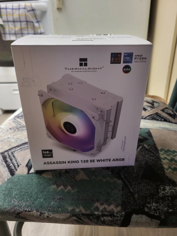 Selling a brand new Thermalright Assassin King 120 SE White ARGB CPU cooler! It's still in its box and has never been used. Key features: - 148mm height - 100% RAM compatibility - AGHP Heatpipe Gen.4 - Addressable RGB lighting - High-end thermal paste It supports motherboards: Intel LGA 1851/1700/115X/1200 and AMD AM5/AM4 Dimensions: L 120mm * W 46mm * H 148mm. Fan dimensions: 120mm * 120mm * 25mm brand new , sealed price firm pick up only