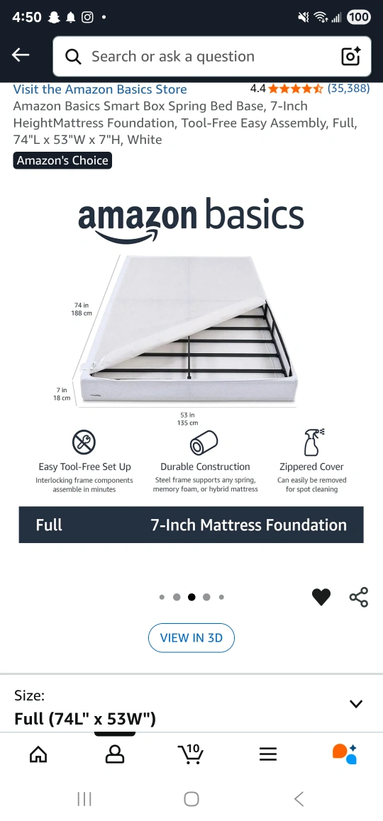 Selling an Amazon Basics Smart Box Spring Bed Base in full size (74"L x 53"W). It's a 7-inch height mattress foundation with tool-free easy assembly. Originally bought for $177.63!