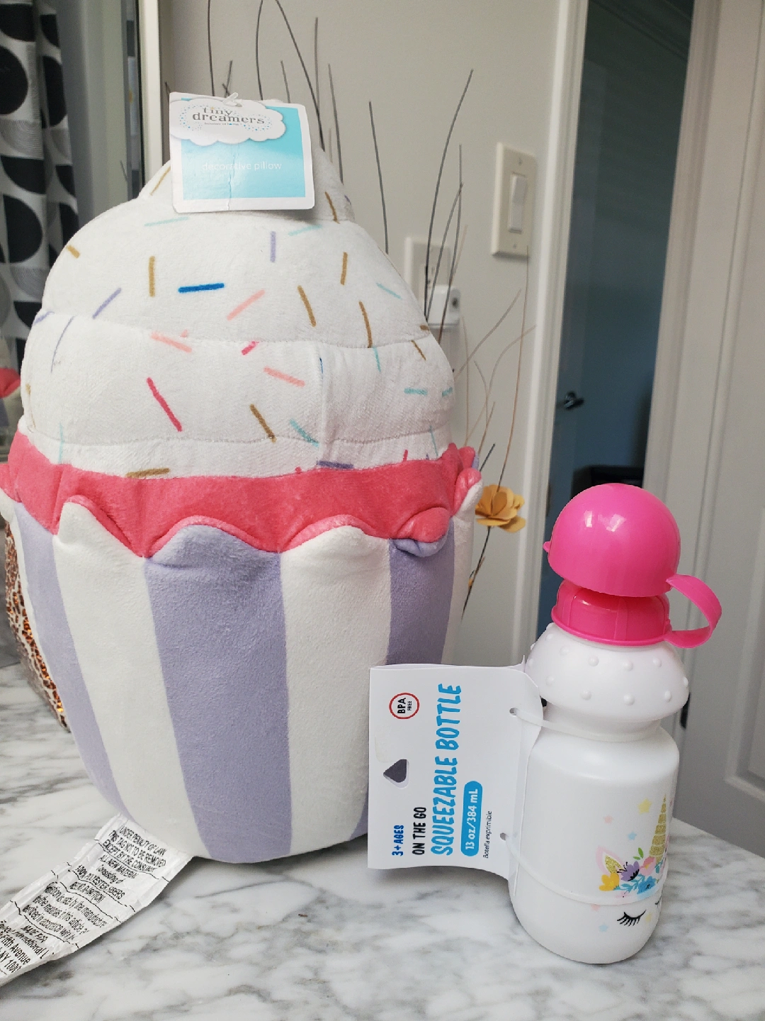 I have a cute Tiny Dreamers decorative cupcake pillow and a squeezable bottle for sale! The bottle is BPA free and holds 12 oz / 354 mL. Recommended for ages 3+
