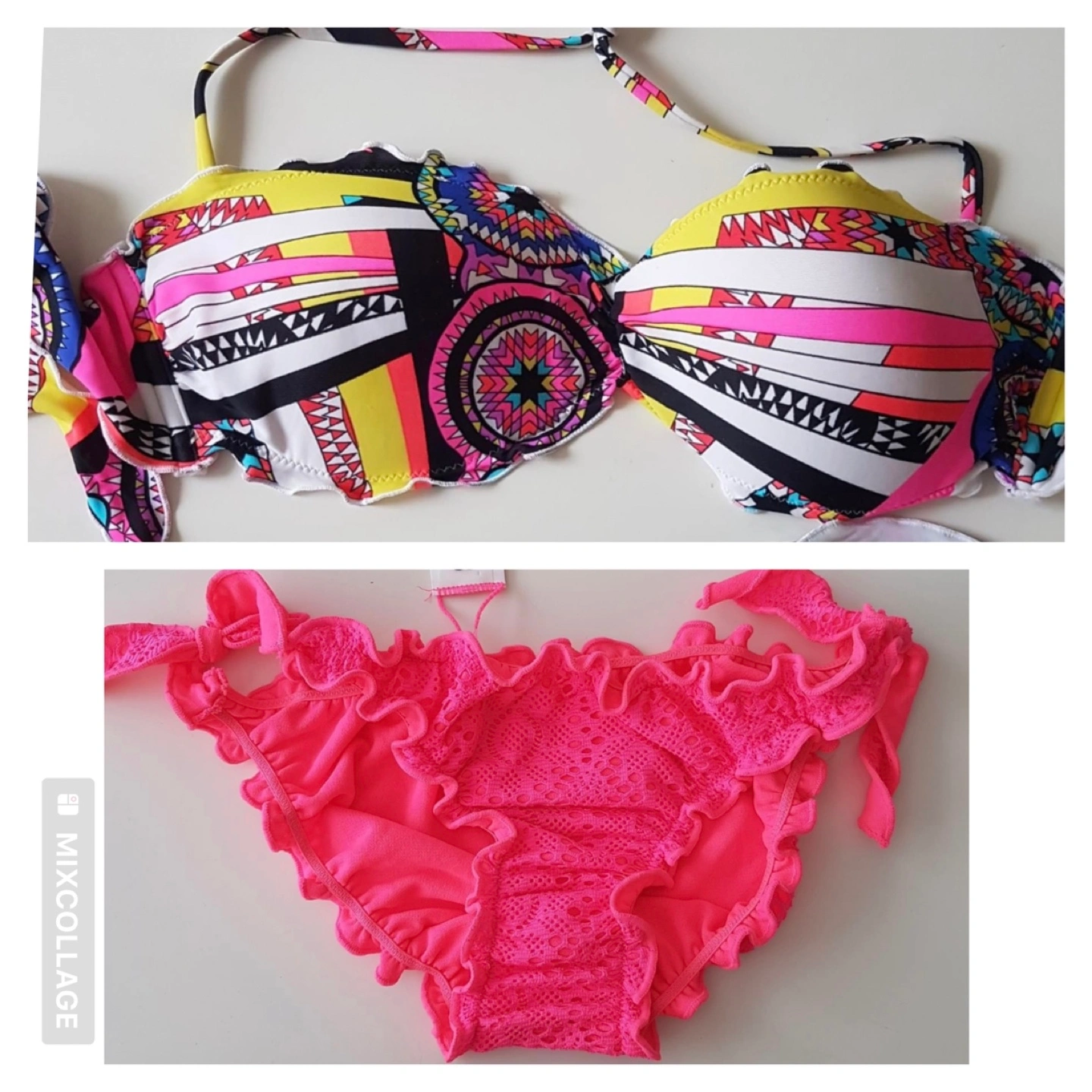 The bottom is size L new never worn, the top is worn but just few times perfect condition size M. Different brands but goes nicely together.