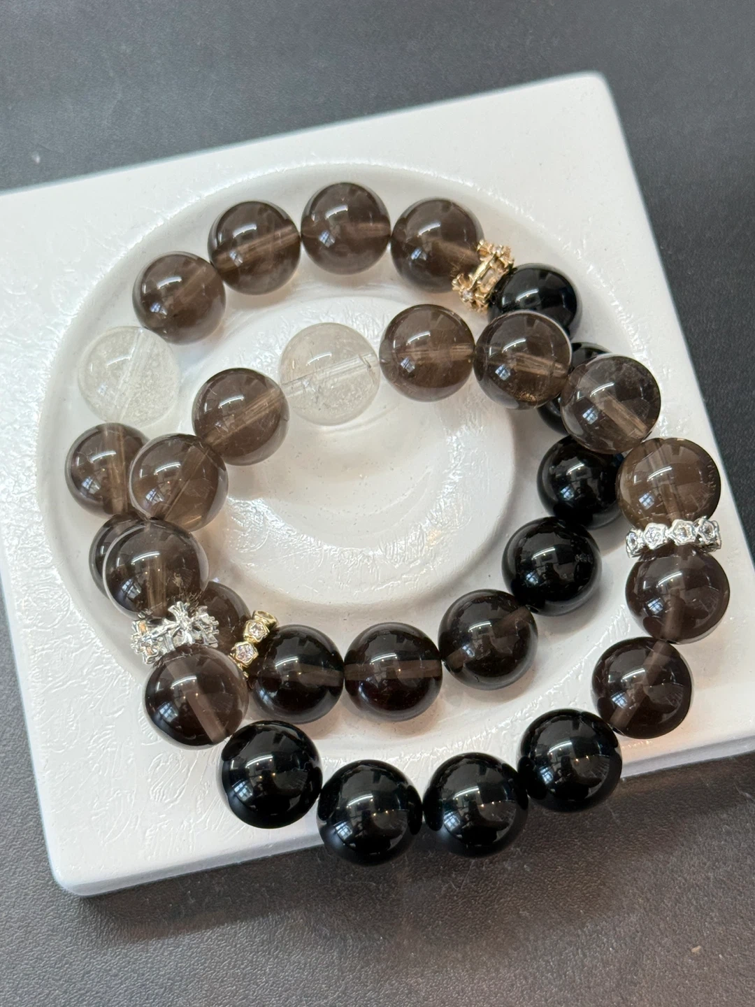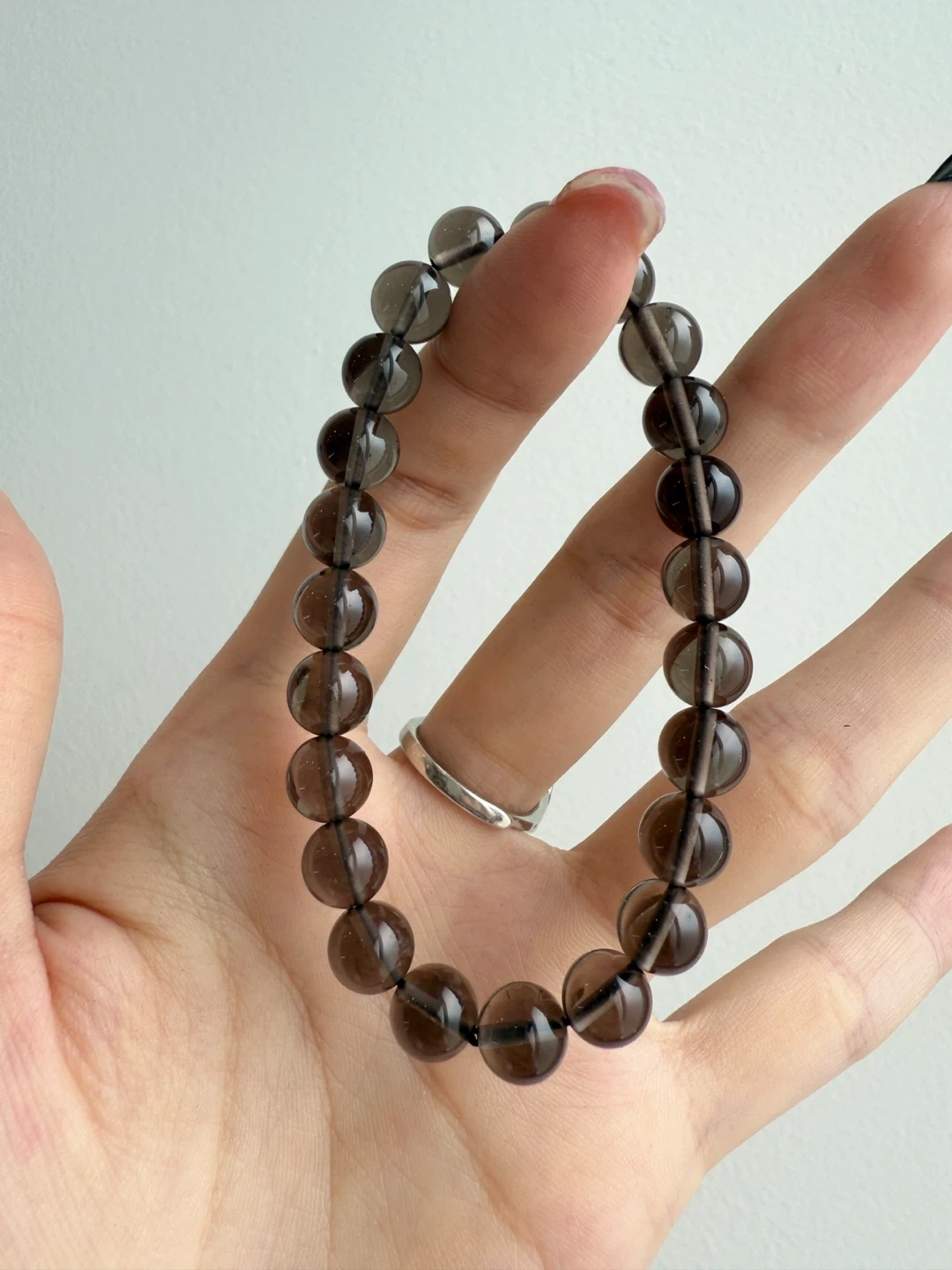 High quality crystal bracelet with reasonable price and special designs. Fully Transparent Smoky Quartz 1️⃣Crystal size: 8+ mm 💰 Wrist size: 15 cm Can customizable wrist circumference 2️⃣Crystal size: 8+ mm 💰15*2 Wrist size: 15 cm Can customizable wrist circumference Smoky Quartz is a rare, high-grade variety of smoky quartz distinguished by its crystal-clear body with a rich, uniform smoky brown hue, free from visible impurities or cloudiness. Symbolism & Meaning: • Grounding & Stability – Anchors energy to the earth, helping to keep emotions and thoughts balanced during stressful times. • Protection – Absorbs and transmutes negative energies, acting as an energetic shield. • Clarity in Challenges – Supports clear thinking, decision-making, and calm problem-solving. • Emotional Release – Aids in letting go of old fears, grief, or emotional blockages. • Resilience & Endurance – Encourages persistence and strength in long-term goals. 📩 DM for customize bracelet