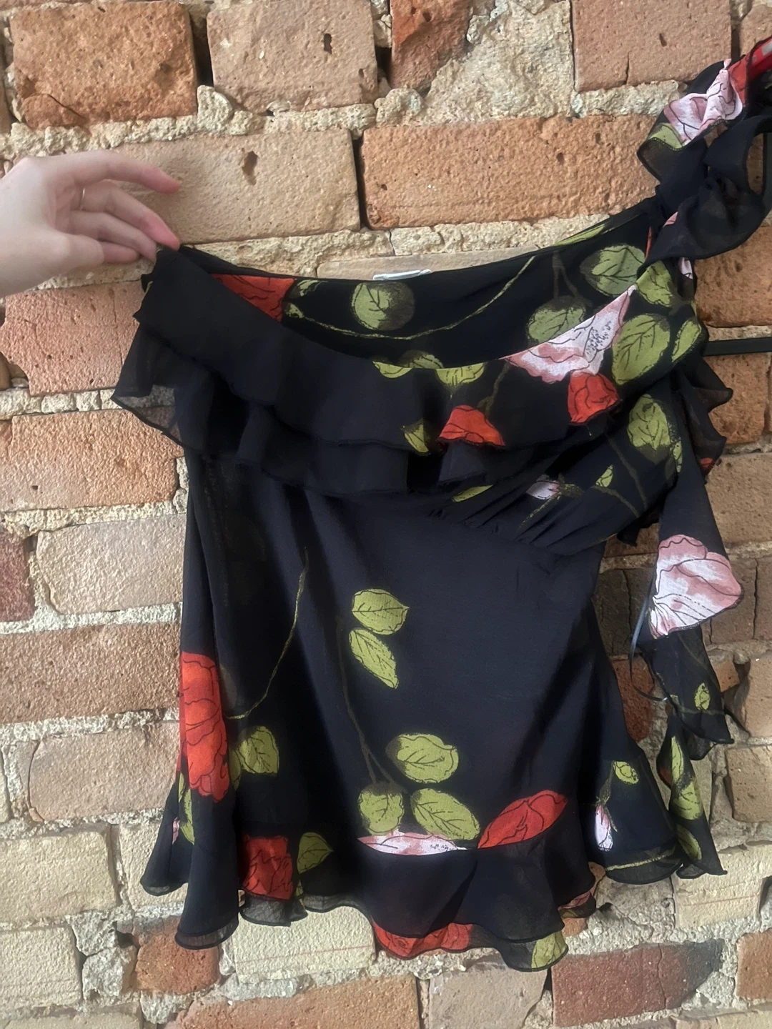 Selling a cute Kimchi Blue floral ruffle top in size small. Off the shoulder style.