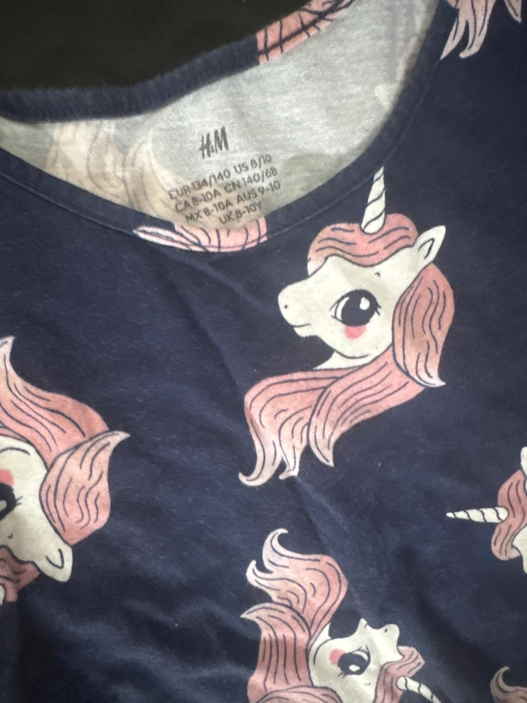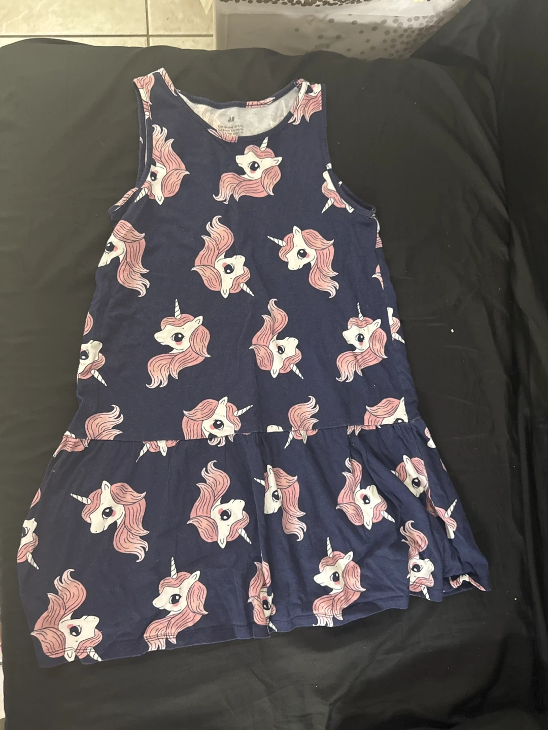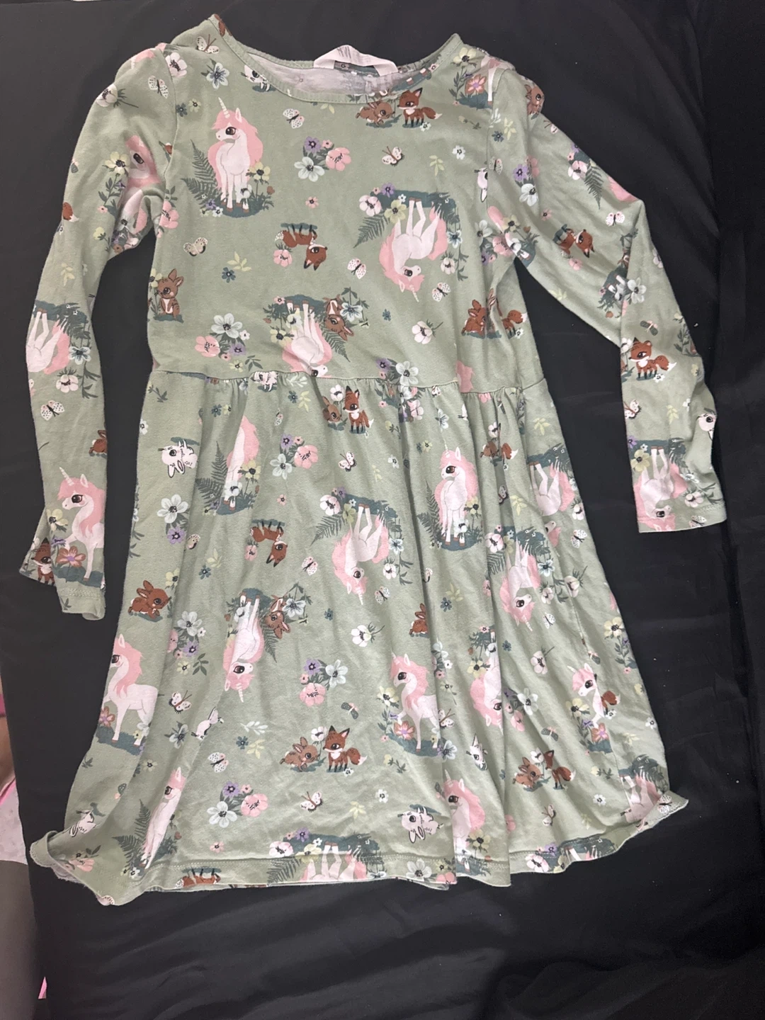 Two cute dresses for girls! One is navy blue with unicorns and the other is green with animals. Both are size 8-10 and from H&M