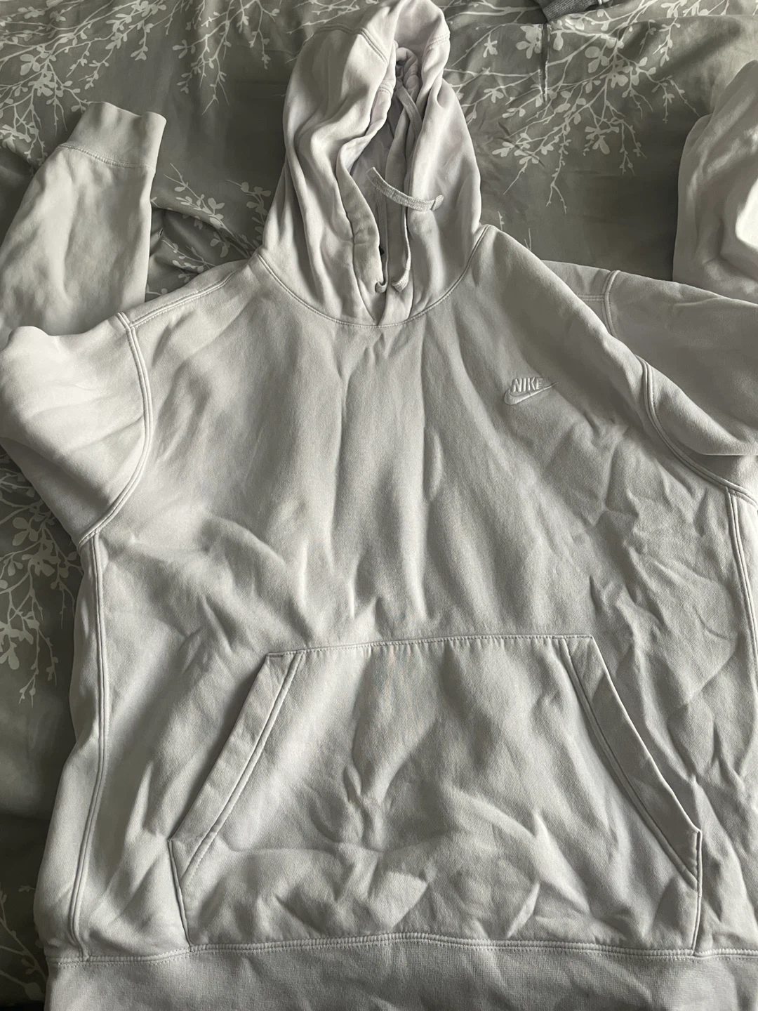 Selling a Nike hoodie in size L. It's in great condition and ready for a new home! Perfect for staying cozy on cooler days. The material is soft and comfortable, making it ideal for everyday wear. Don't miss out!