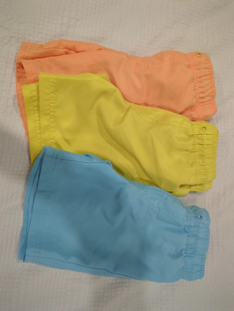 Selling a bundle of three swim trunks! They're in great condition and ready for some fun in the sun. You'll get one yellow pair, one blue pair, and one orange pair