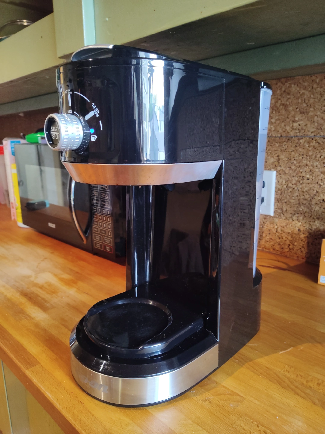 Does both K-cups and pot. We used it for K-cups, but the pot has not been used. Comes with original packaging.