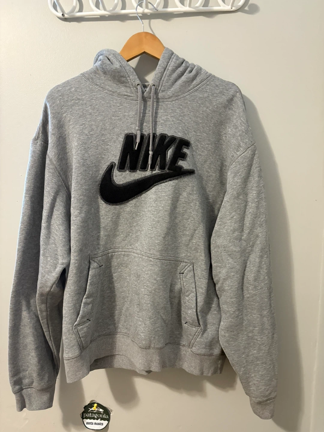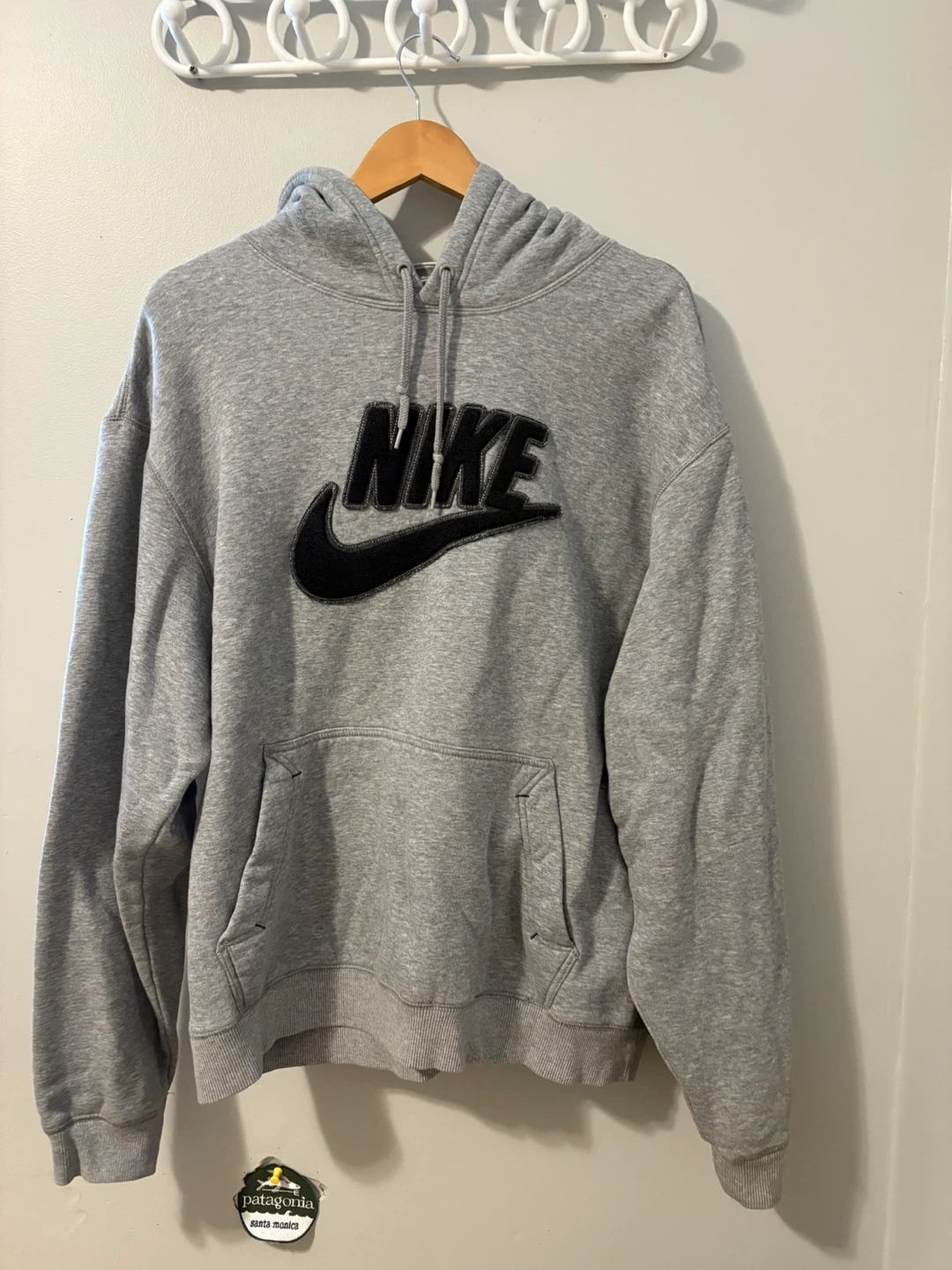 Elevate your casual wear with this stylish Nike embroidered hoodie in a versatile gray shade. Designed for the modern man, this regular fit hoodie combines comfort with a touch of sporty elegance. The size L pullover is ideal for those looking for a blend of warmth and ease, perfect for everyday activities or a relaxed workout session. Crafted with attention to detail, this hoodie features a clean and classic embroidered accent that adds a subtle hint of Nike's iconic branding. Its soft fabric ensures durability and ease of movement, making it a staple addition to your activewear or wardrobe. Whether you're hitting the gym or just enjoying a laid-back day out, this hoodie is designed to keep up with your lifestyle.