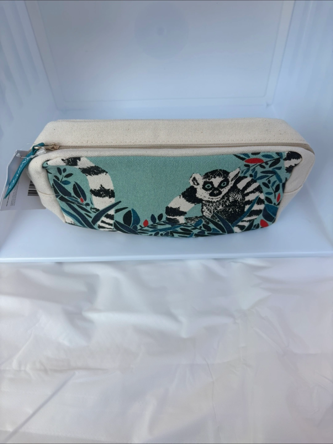 Small zippered case featuring the cute ring-tailed lemur is brand new and never used. Perfect compact size could be used as a pencil / marker case, for storing cosmetics, office supplies, small sized stationary, small tools or whatever you’d like. A single compartment compact accessory pouch made of durable cloth fabric. Fun Fact: The cute ring tailed lemurs are a critically endangered species from the island of Madagascar