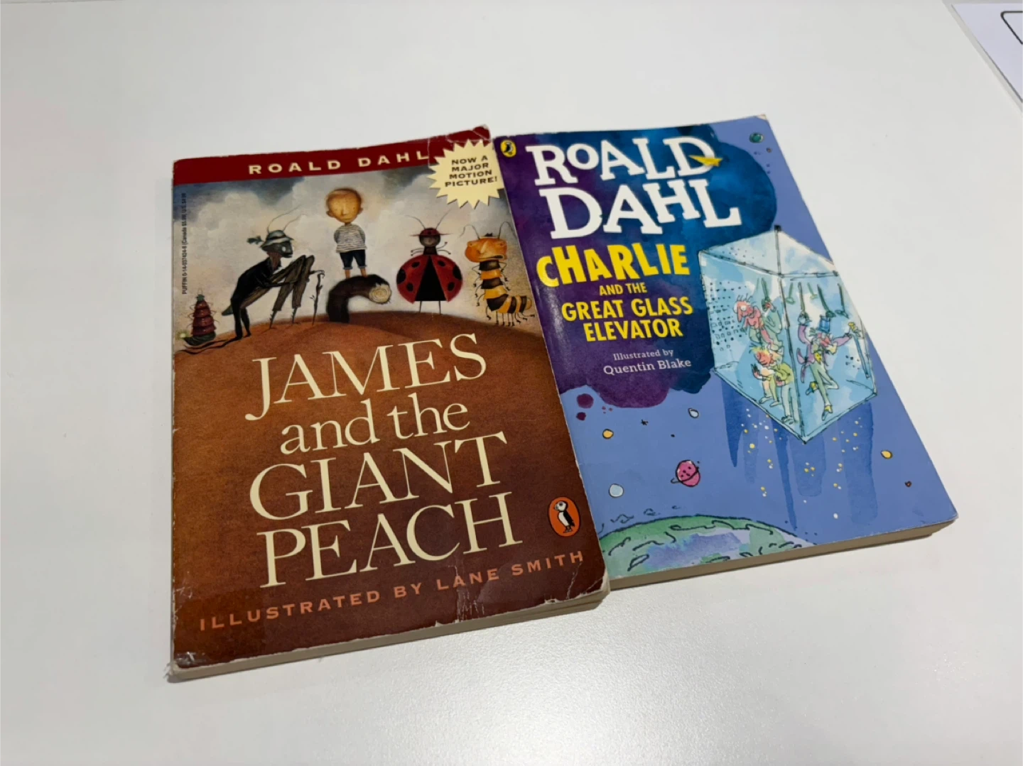 $5 each 1. James and the Giant Peach • Author: Roald Dahl • First Published: 1961 (illustrated by Nancy Ekholm Burkert in the original U.S. edition). • Your Copy: A Penguin paperback edition, illustrated by Lane Smith. These Lane Smith editions were published in the 1990s, around the time of the 1996 animated movie (hence the “Now a Major Motion Picture” sticker). • Plot: James escapes his cruel aunts by traveling inside a giant magical peach with insect friends. 2. Charlie and the Great Glass Elevator • Author: Roald Dahl • First Published: 1972, sequel to Charlie and the Chocolate Factory. • Your Copy: A Puffin paperback edition, illustrated by Quentin Blake (Dahl’s most famous illustrator). Likely published in the 2000s–2010s as part of Puffin’s uniform reprint series. • Plot: Charlie, Willy Wonka, and his family blast into space in the Great Glass Elevator and run into political and cosmic adventures.