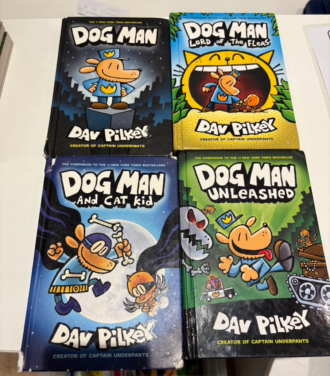 1. Dog Man (Book 1, 2016) • The debut book introducing Dog Man, a part-dog, part-human police hero created when a cop and his dog were fused together after an accident. 2. Dog Man Unleashed (Book 2, 2016) • Dog Man faces off against Petey the Cat, a recurring villain, in more wacky adventures. 3. Dog Man and Cat Kid (Book 4, 2017) • Dog Man teams up with Li’l Petey (aka Cat Kid) in a story about family, identity, and teamwork. 4. Dog Man: Lord of the Fleas (Book 5, 2018) • The Supa Buddies must battle Petey’s former gang of bad guys.