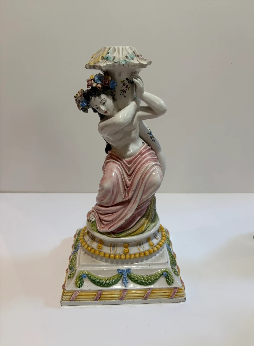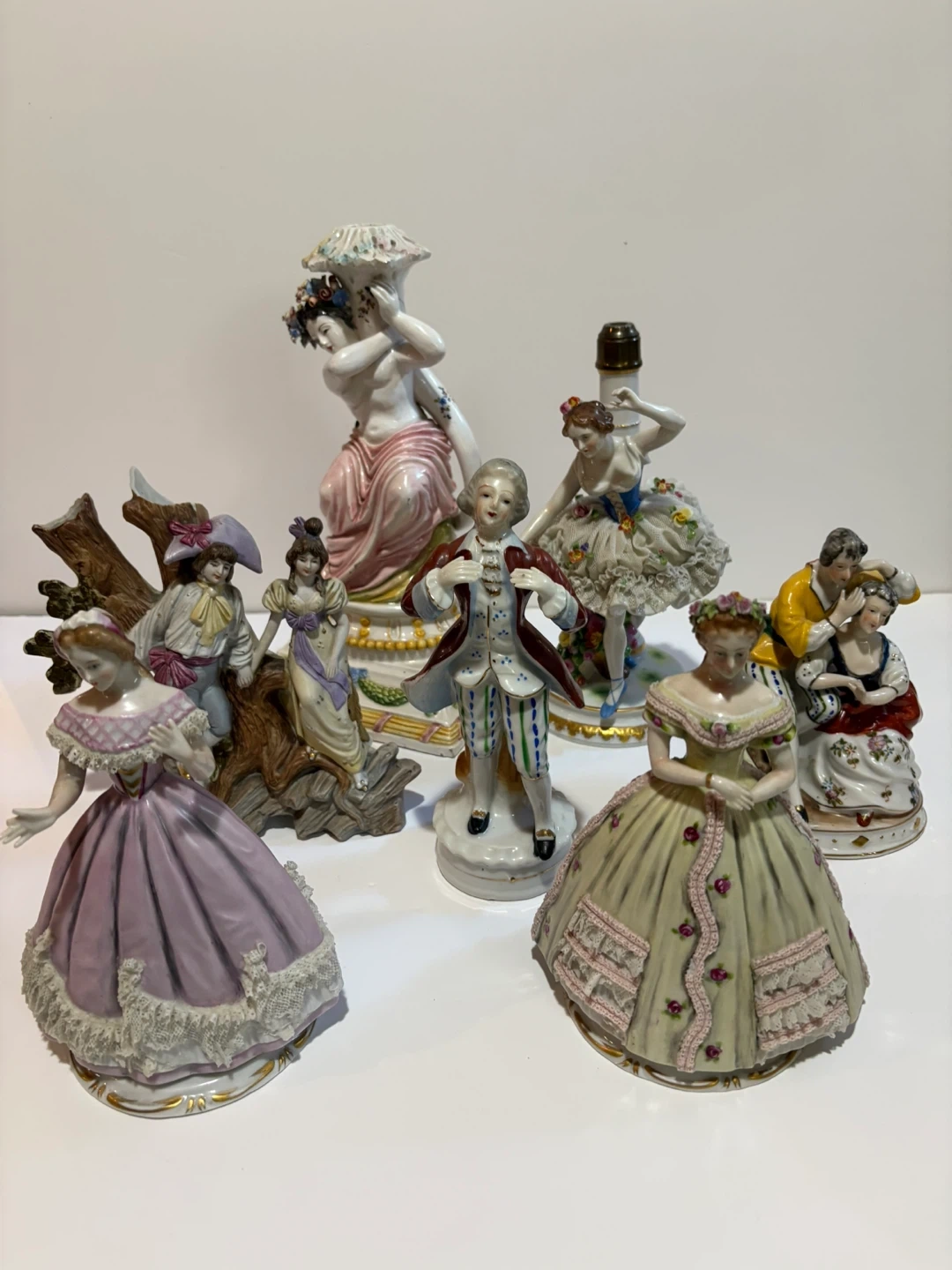 Here are some vintage porcelain figurines. They would look great on a shelf or mantlepiece! Set of 7