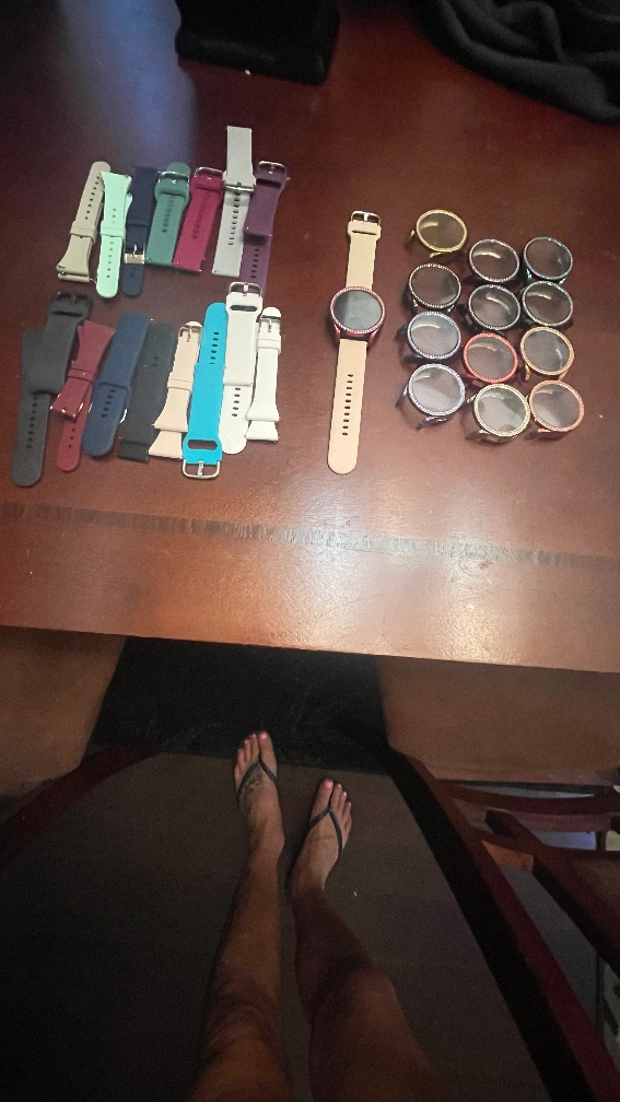 Selling a Samsung Galaxy Watch 6 with a pink band. It comes with a variety of extra bands and decorative bezels so you can customize the watch to your liking! Feel free to message me with any questions!