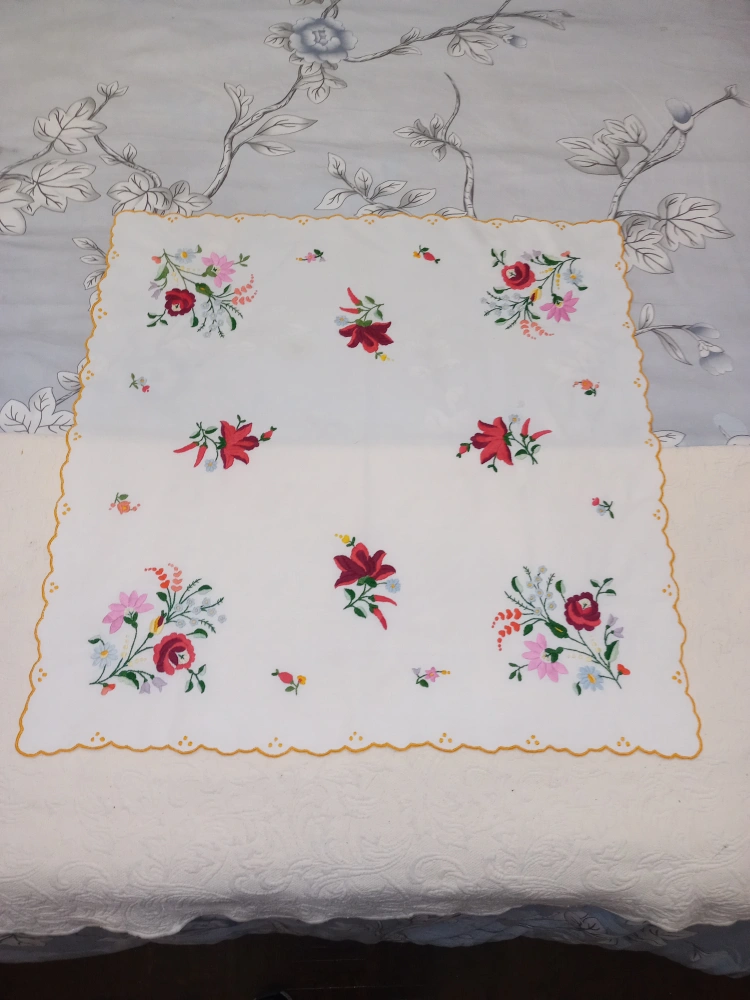 Both are in very good condition. Clean. $5 each table cloth. See all pictures provided. Measurements are: 1st table cloth is 28" 1/4 × 28" 1/4. 2nd table cloth is 27" × 28" 1/4. Check out my other listings.
